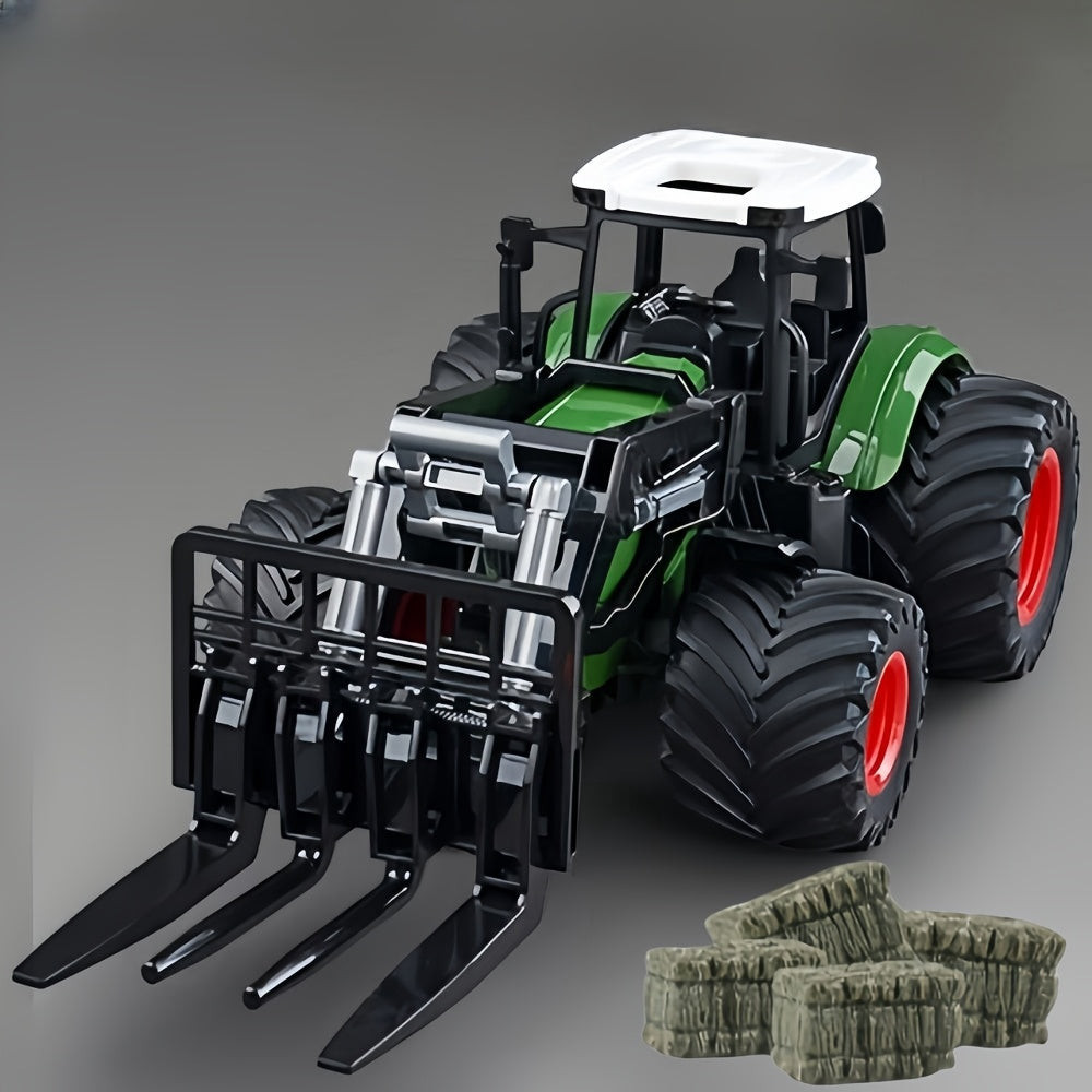 1/24 méretarányú traktor játékkészlet rakodókarral és széna bálákkal