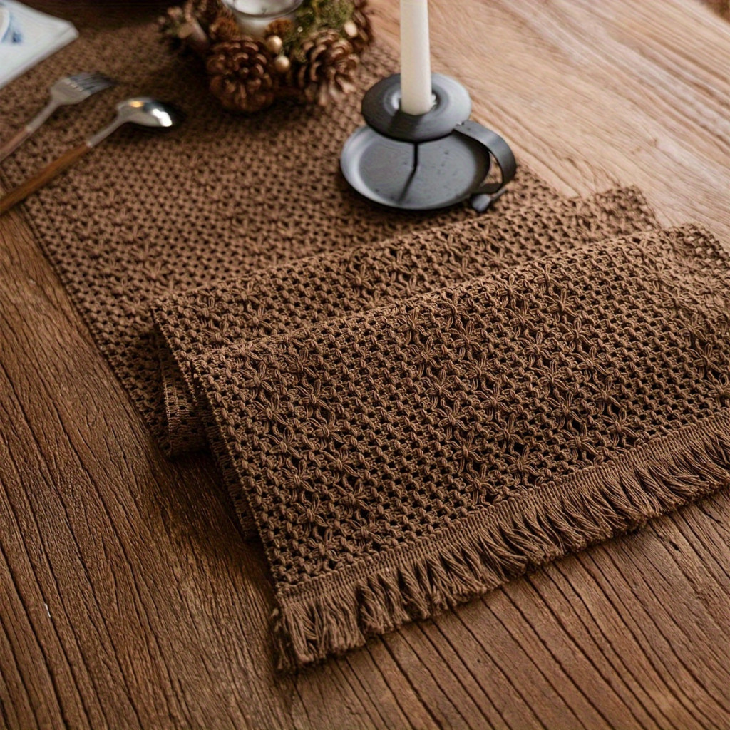 1 db Khaki Színű Kötött Asztalfutó