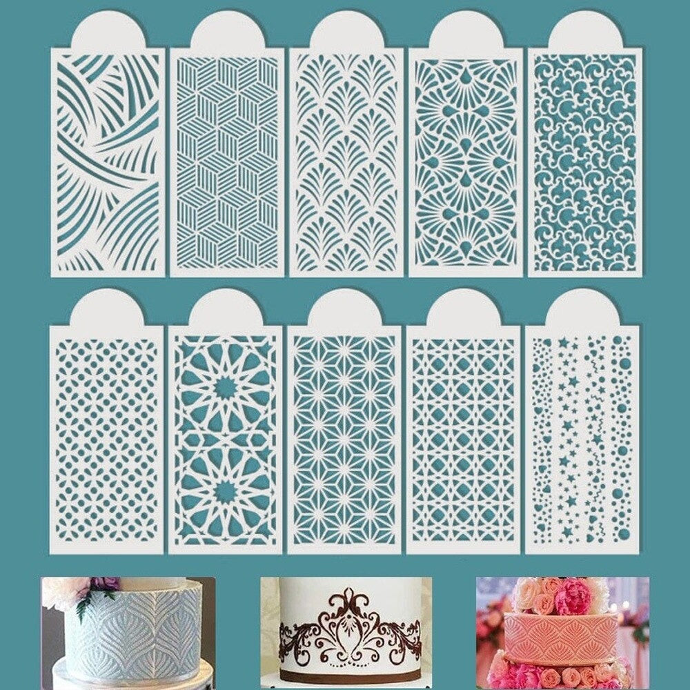 10 DB/készlet, tortasablon, tortadíszítő sablonok