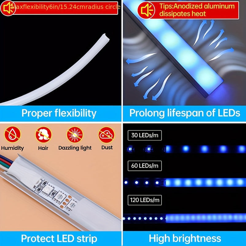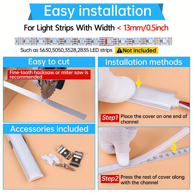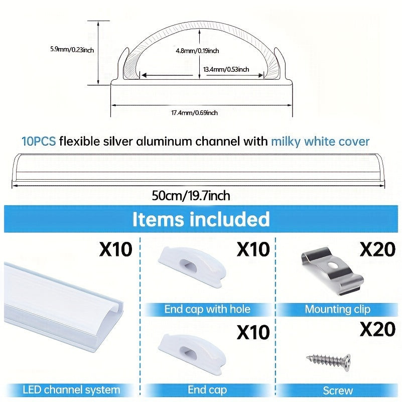 10 csomag 50 cm-es flexibilis ezüst LED csatorna tejfehér LED