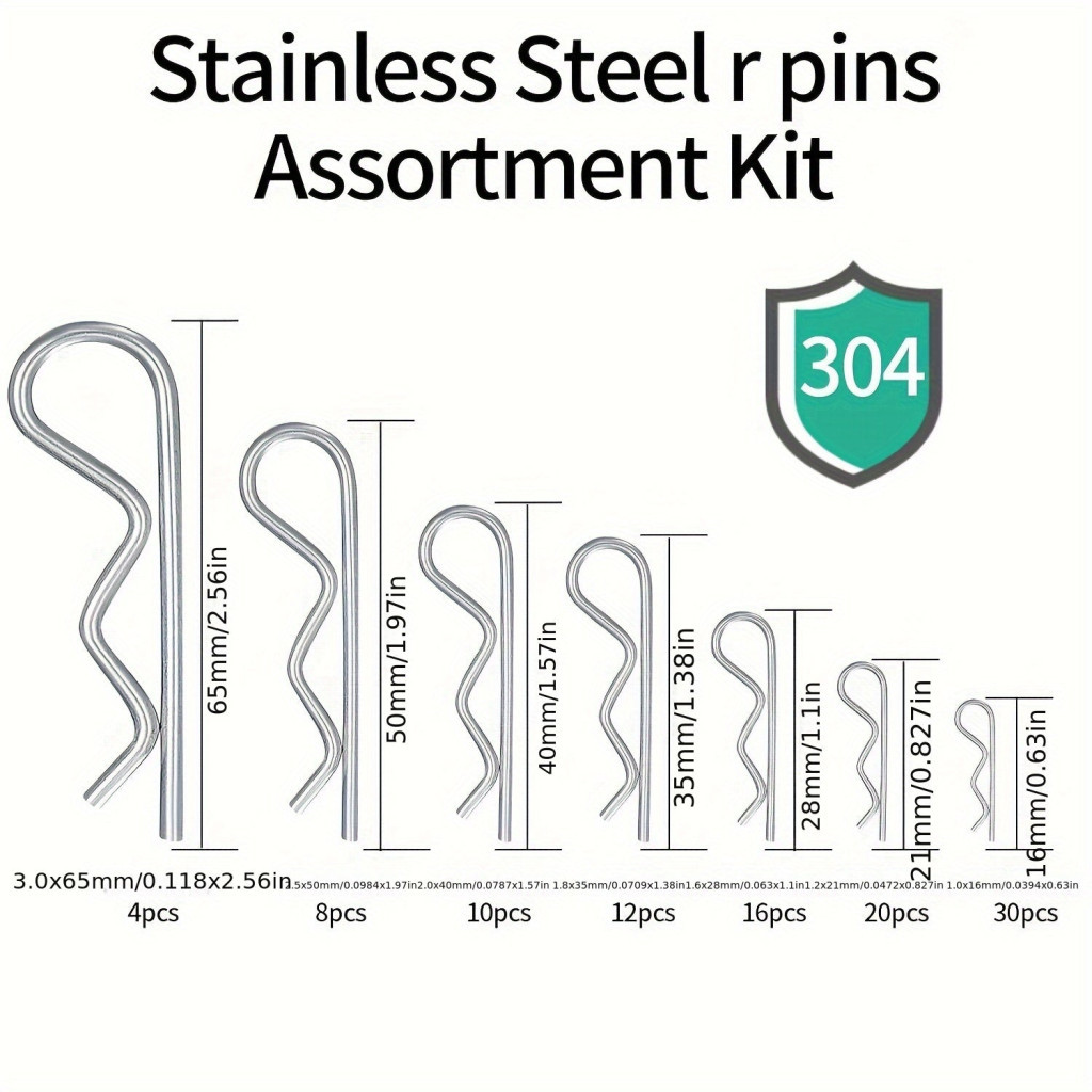 100db Sasszeg Készlet, Rozsdamentes Acél R Kapcsok Rugós Rögzítő Kapcsok