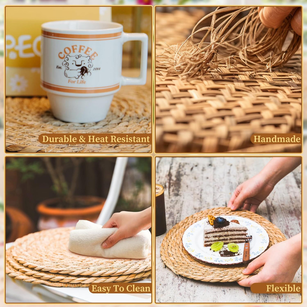10db 33.02 cm-es kerek fonott rattan asztali alátét