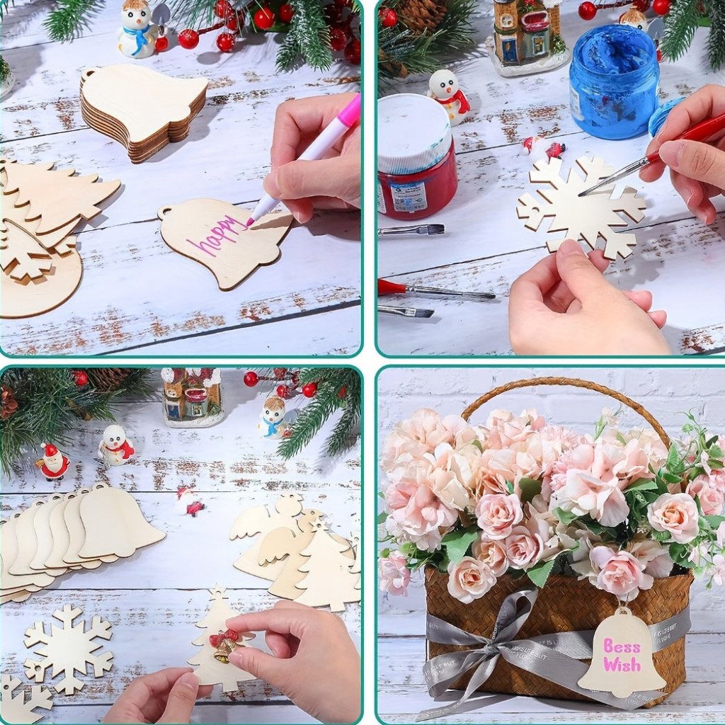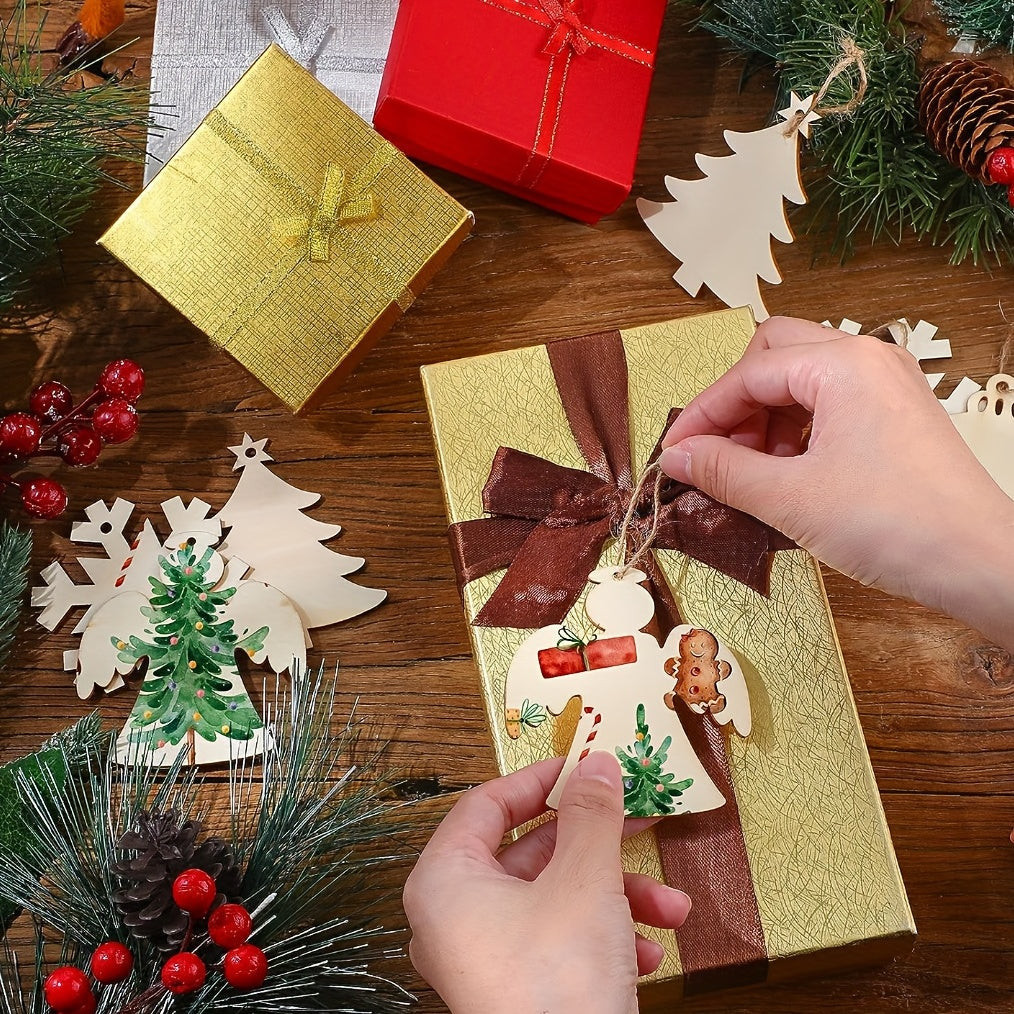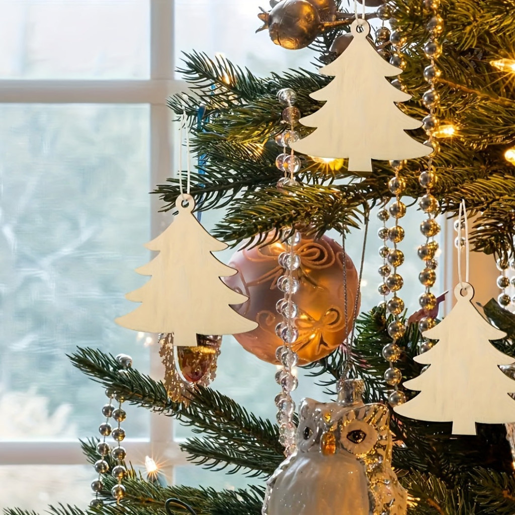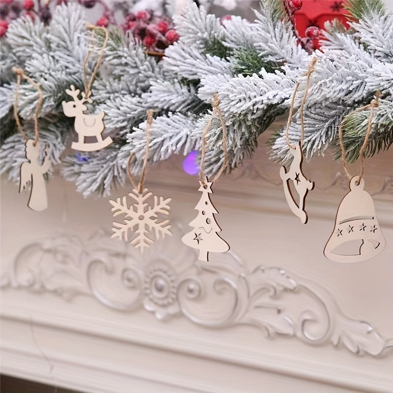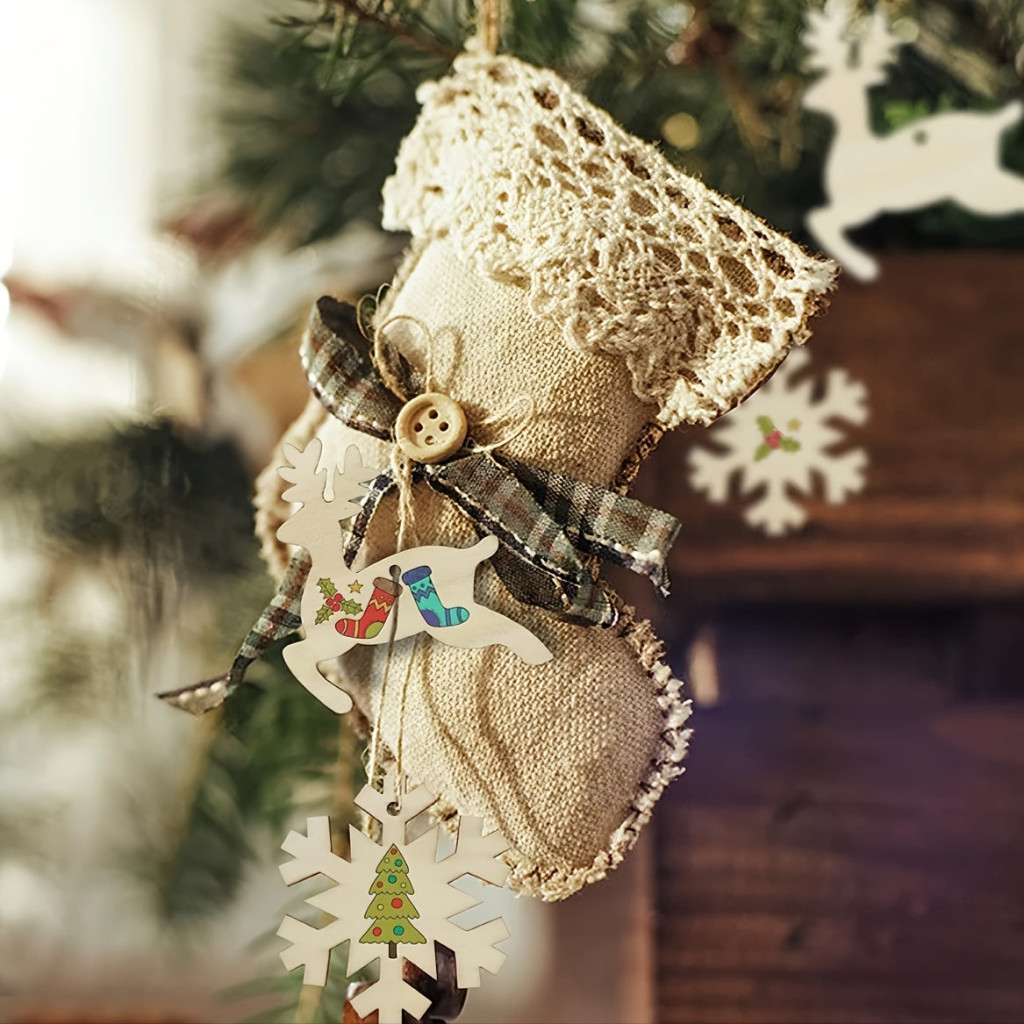 10db-os natúr fából készült karácsonyfa medálkészlet