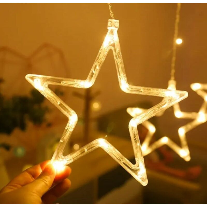 160 ledes 8 programos ledes fényfüggöny karácsonyi, csillag figurákkal, 3 méter - melegfehér