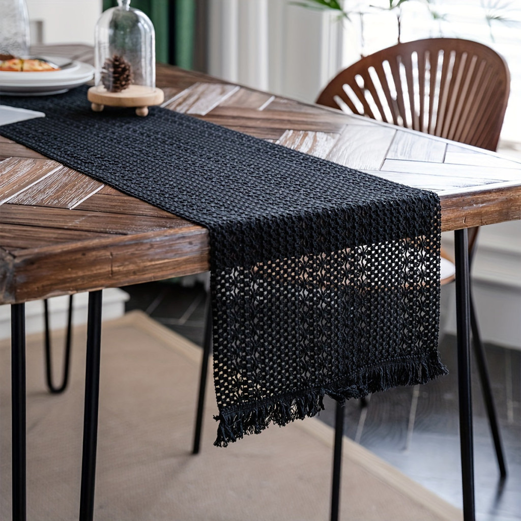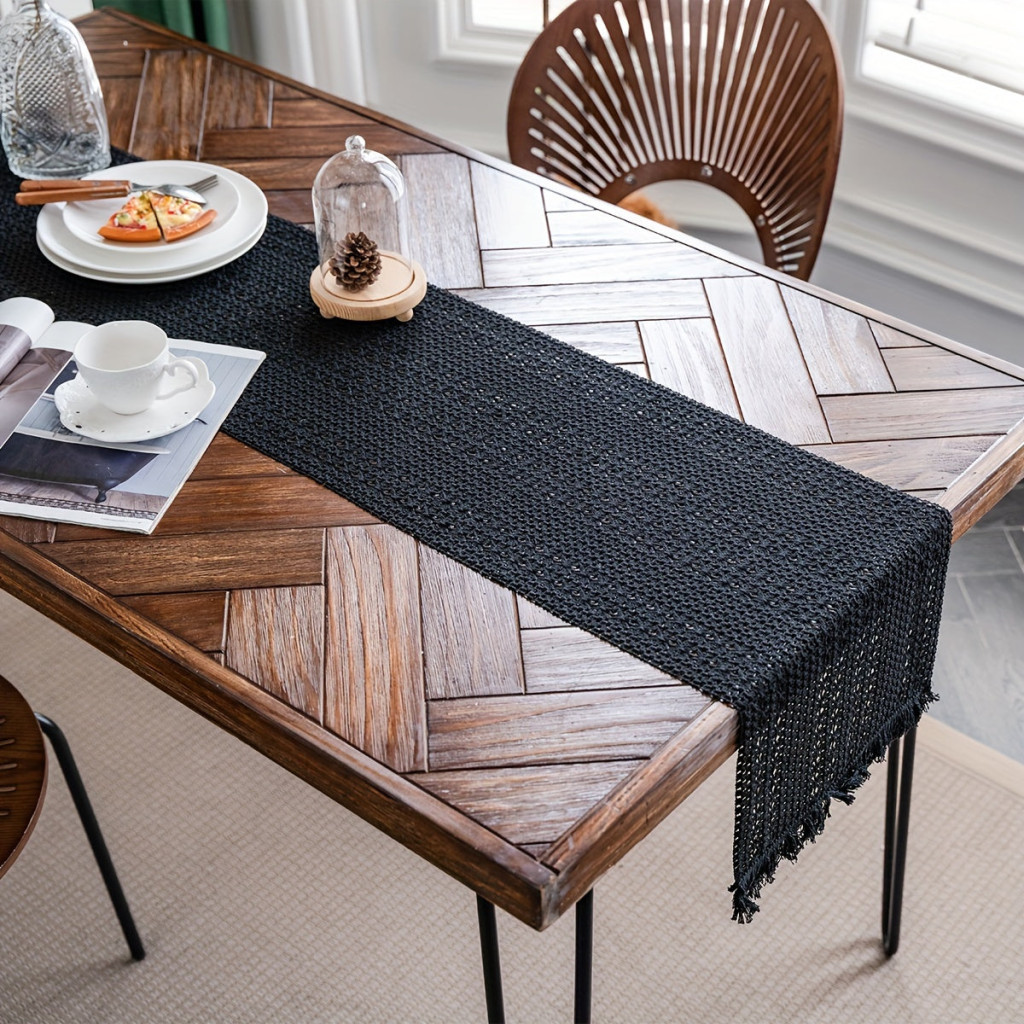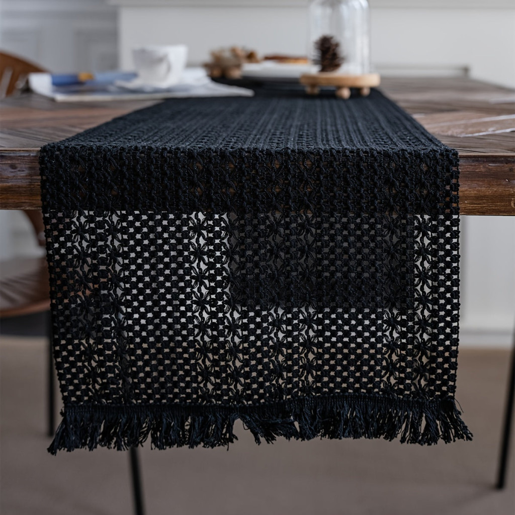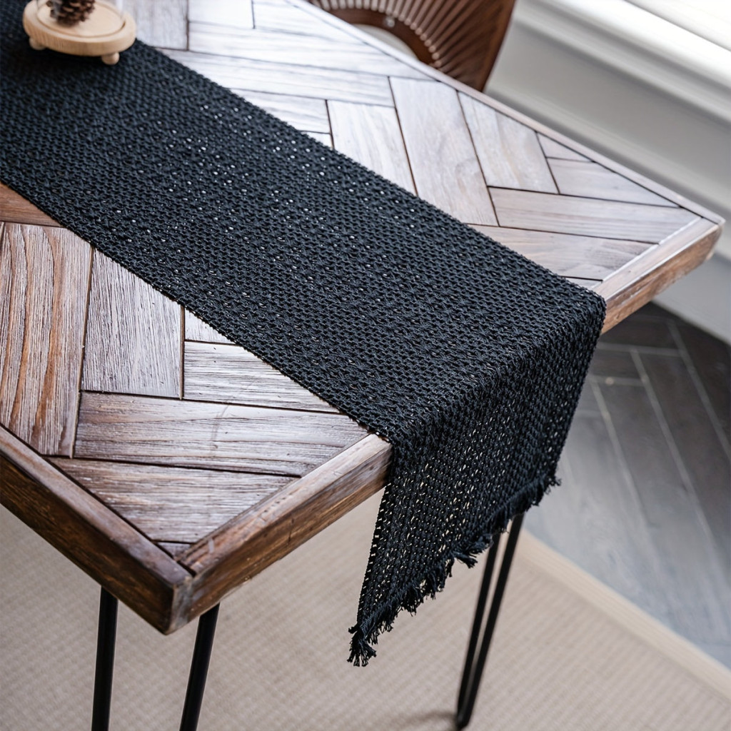 1db Stílusos Fekete-fehér Asztalfutó Bojttal