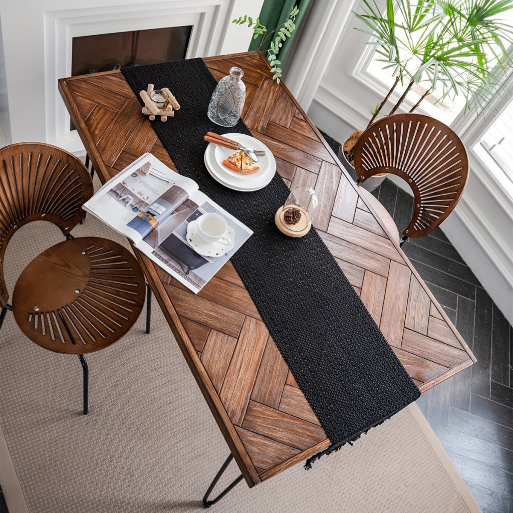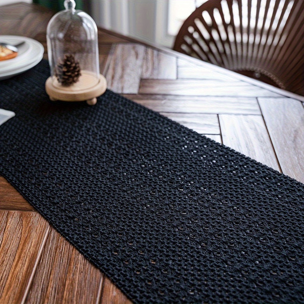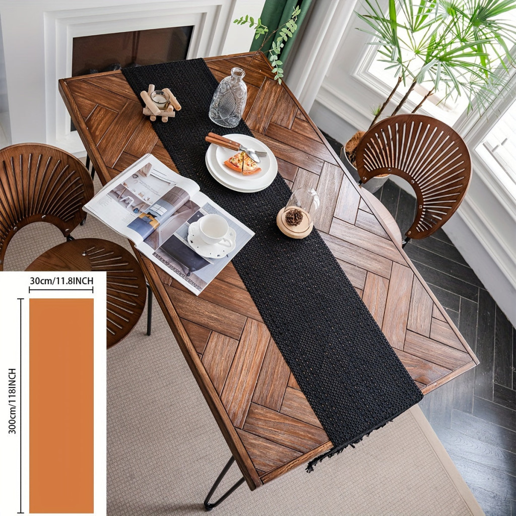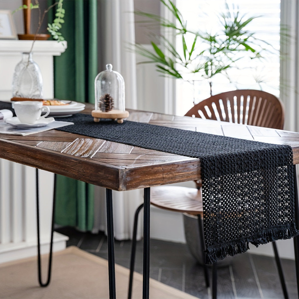 1db Stílusos Fekete-fehér Asztalfutó Bojttal