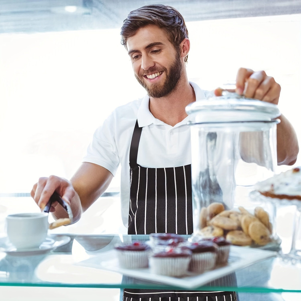 1db, pamut kötény, fekete-fehér csíkos állítható kötény, unisex kötény zsebbel, konyhai szakács kötények, női férfiaknak otthoni konyha, konyhai kellékek