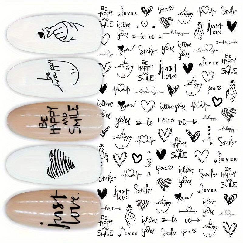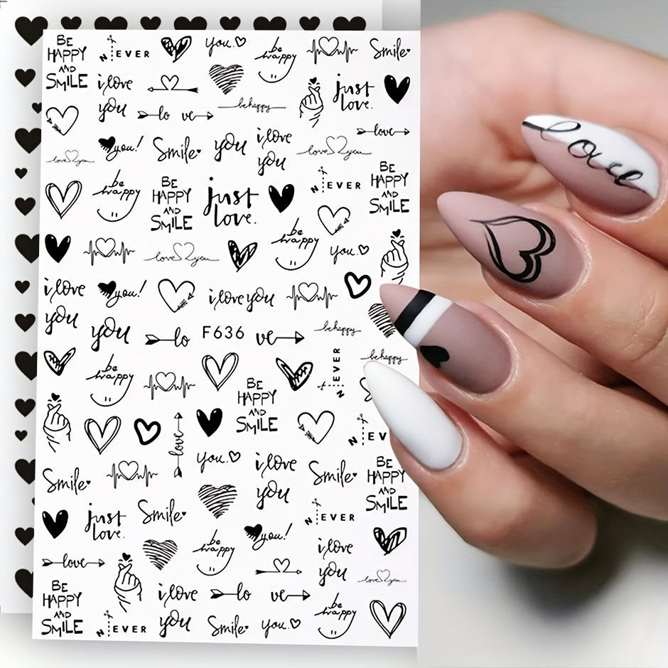 2 Lapos Körömmatricák, Valentin Nap Körömmatricák, Heart Love Design Angol Betűs Köröm Kiegészítők