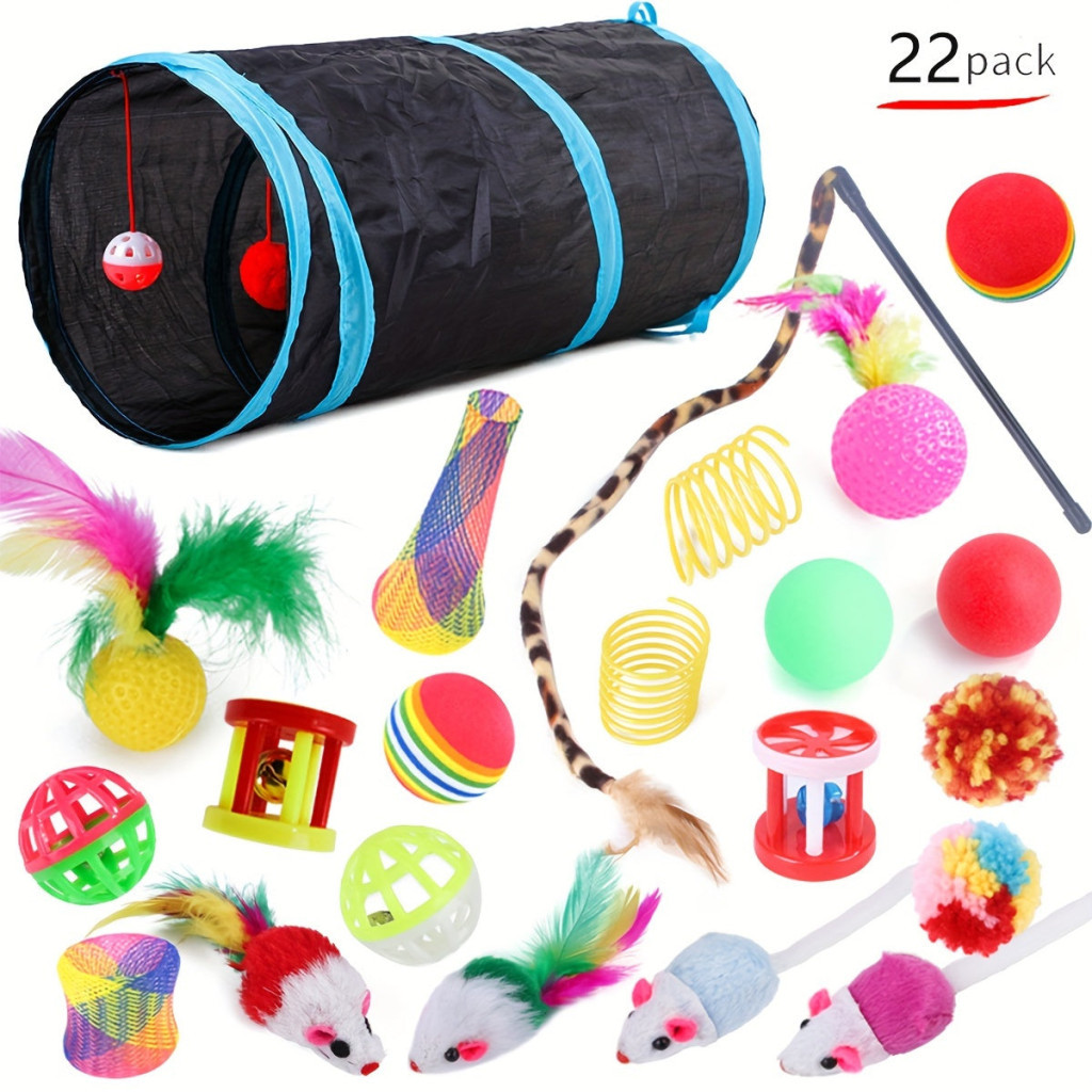 22 darabos macskajáték készlet, összecsukható alagúttal, csengővel