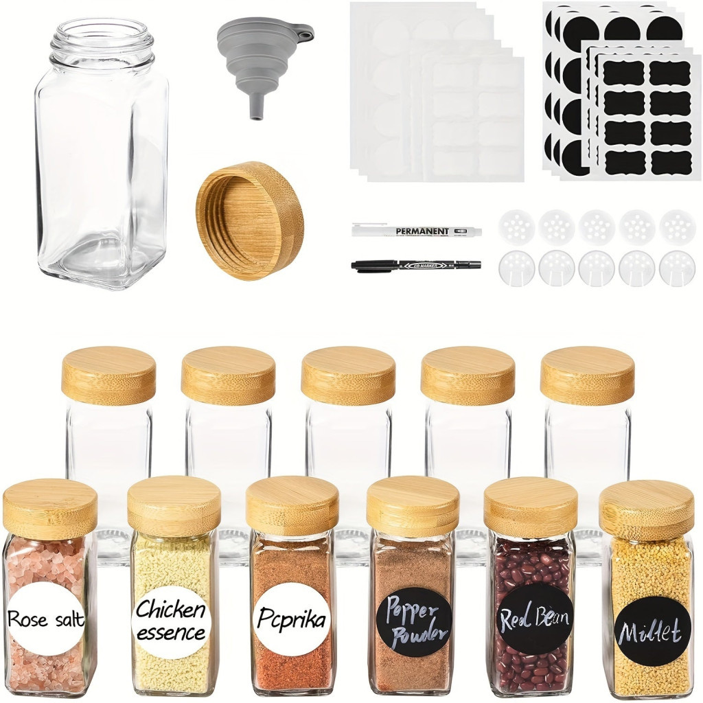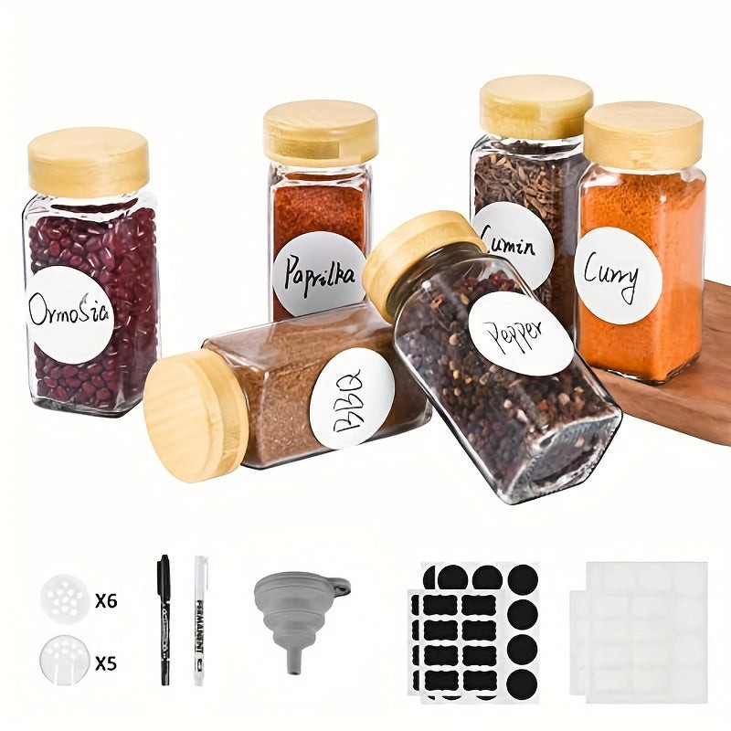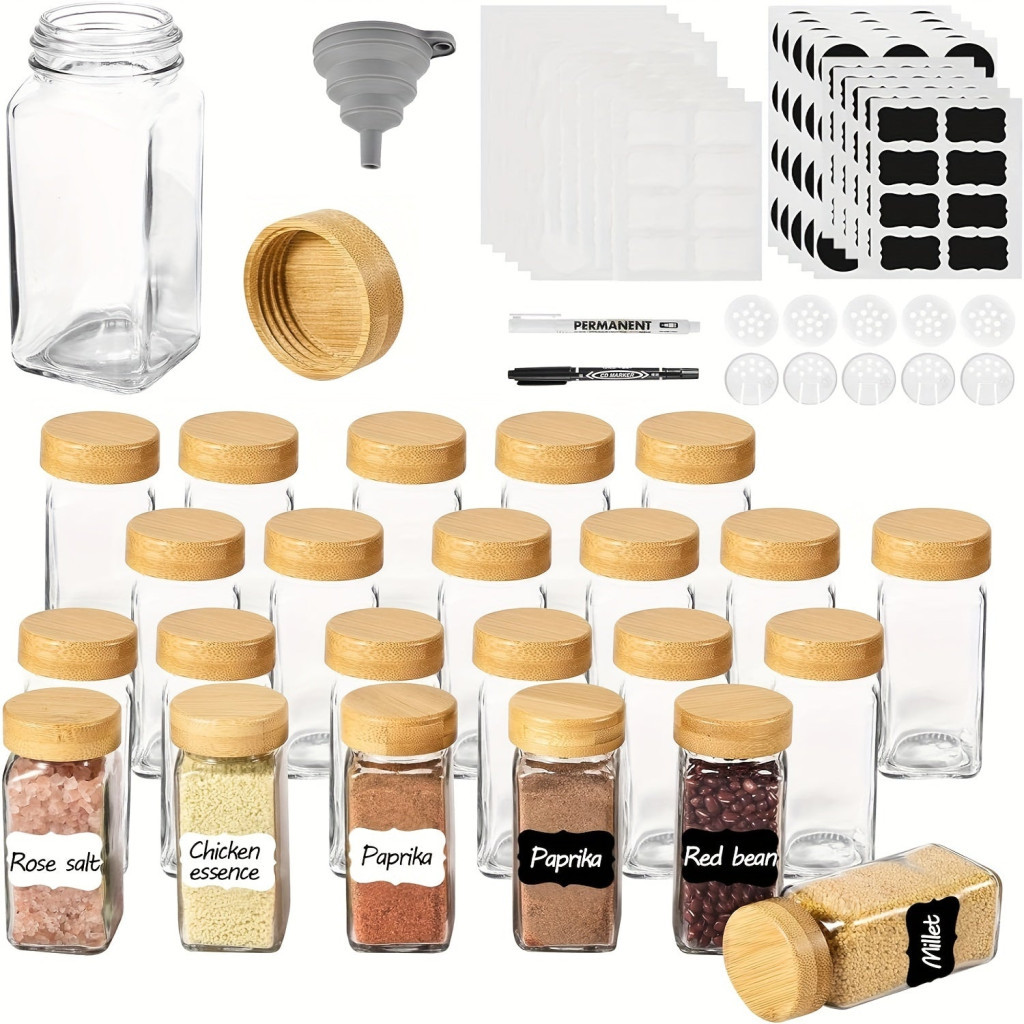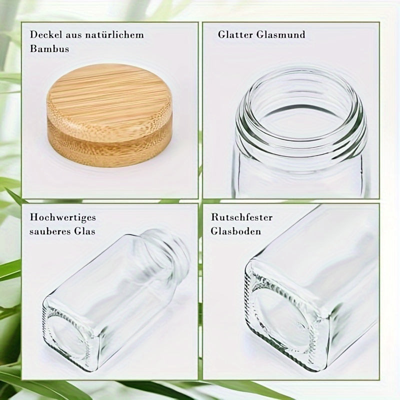 24db fűszeres üvegek címkékkel és bambusz fedőkkel