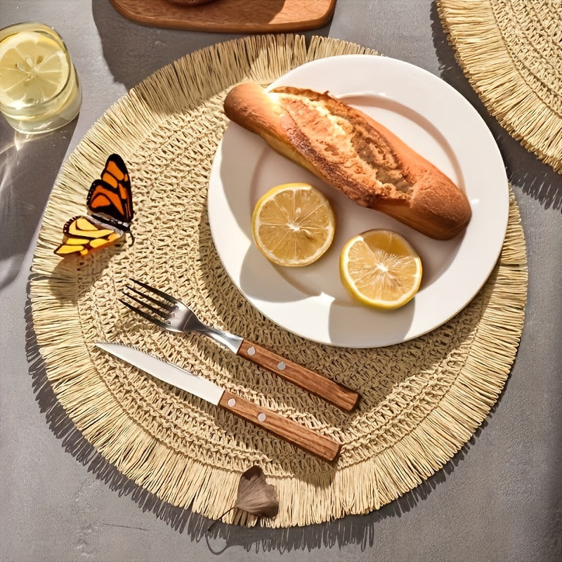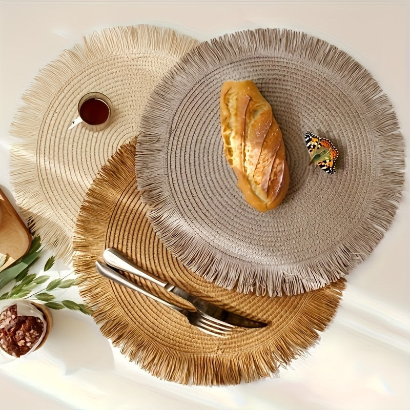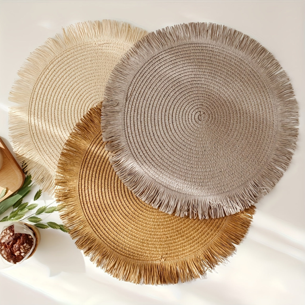 3 darabos készlet kerek fonott papír asztali alátét különböző színekben