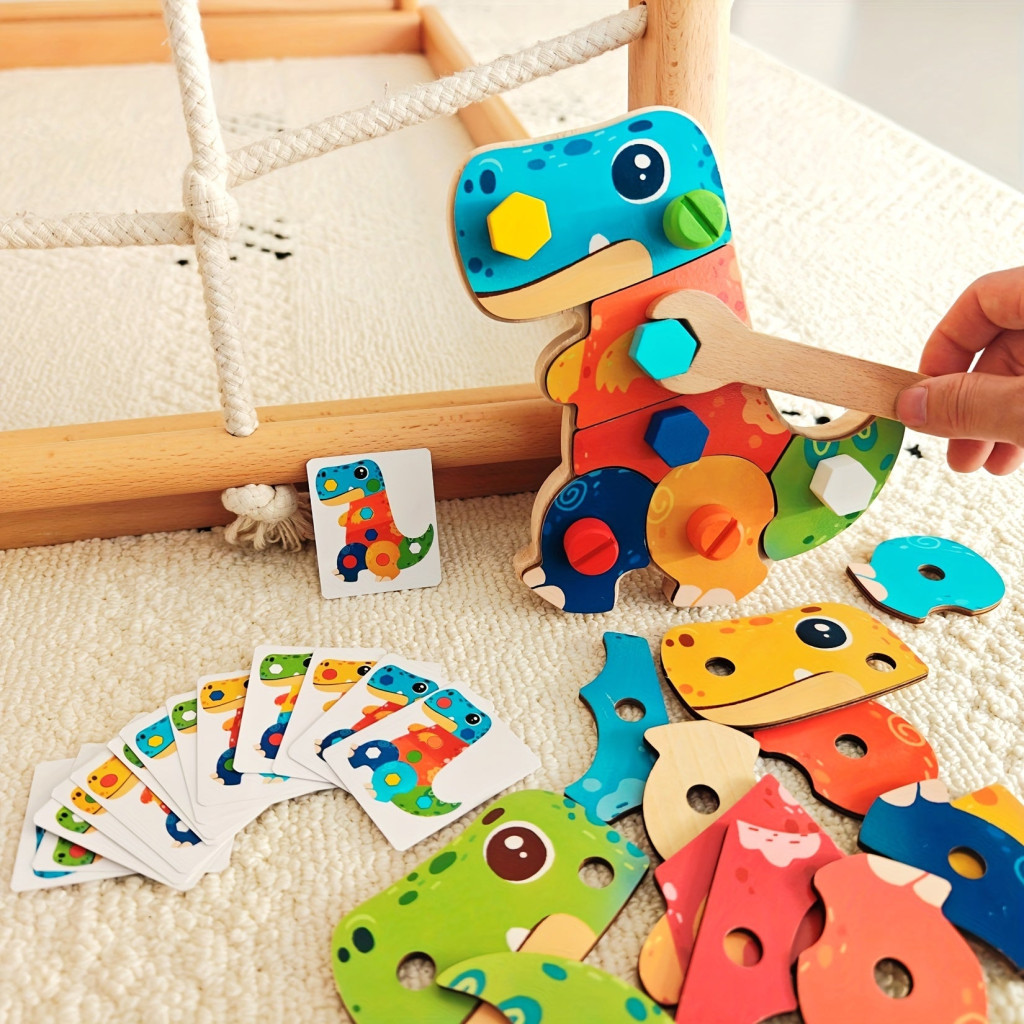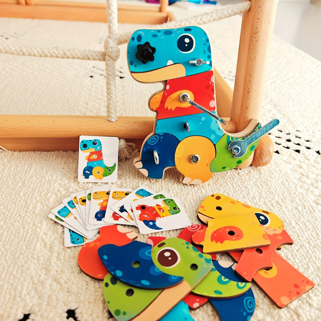 3-részes dinoszaurusz építő puzzle, csavarhúzóval