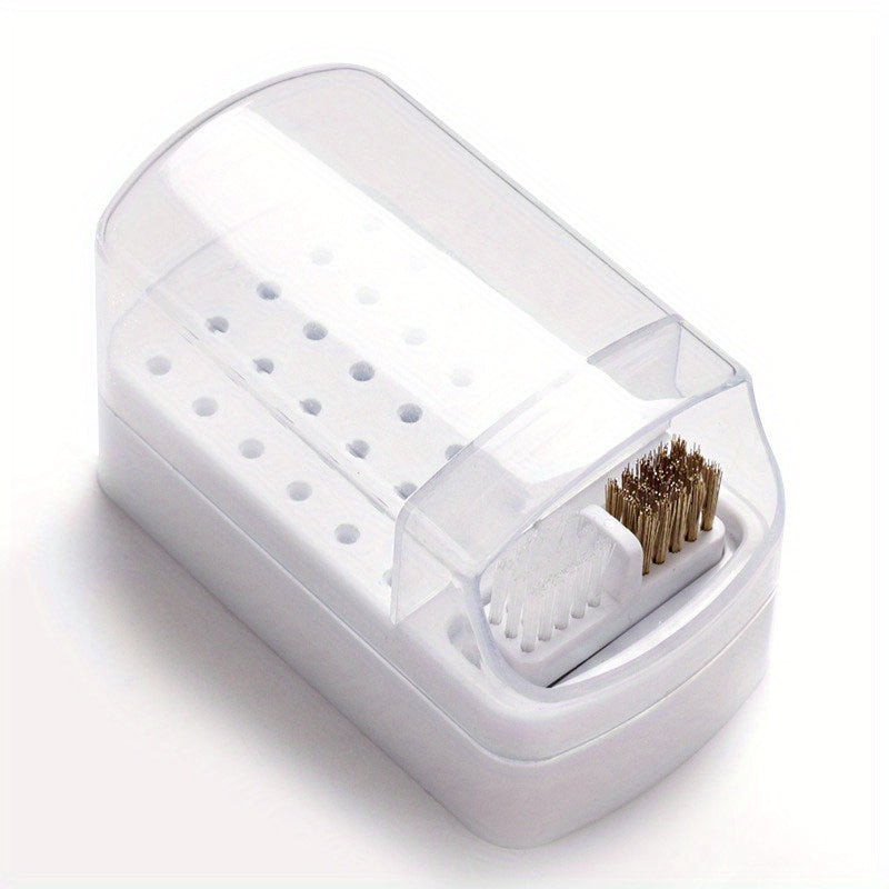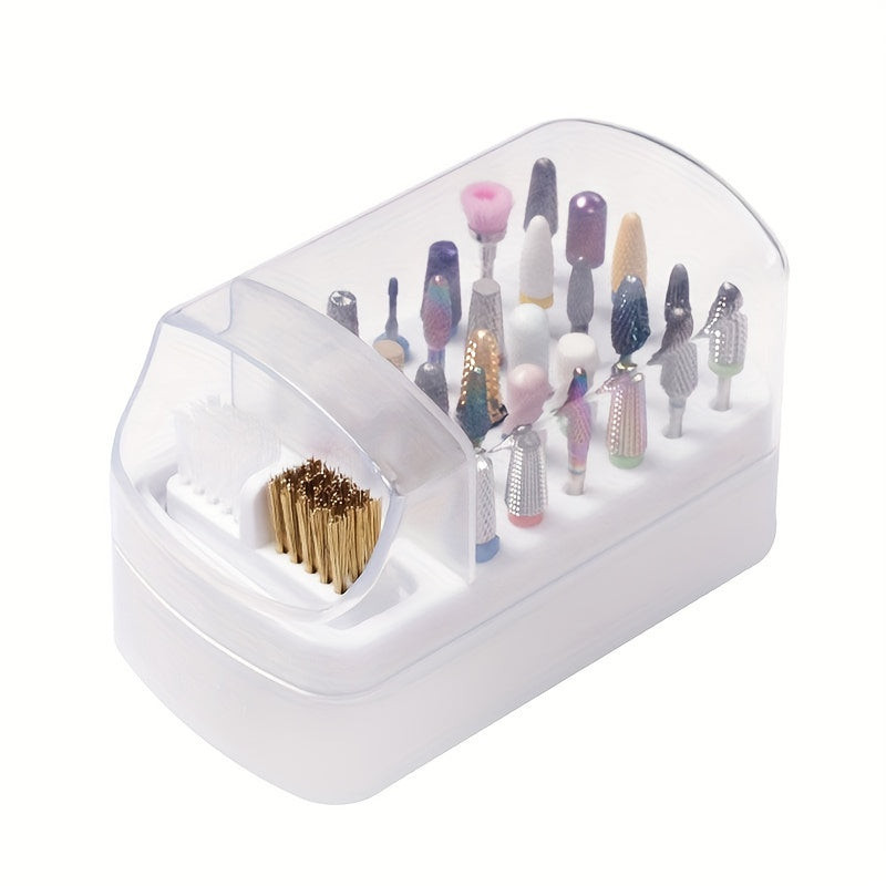 30 lyukú körömdíszítő fúró tárolódoboz ecsettel csiszoló polírozófej-tartóval, kijelző körömfúrószárral, körömtartó manikűrrel (fúrófej nélkül)