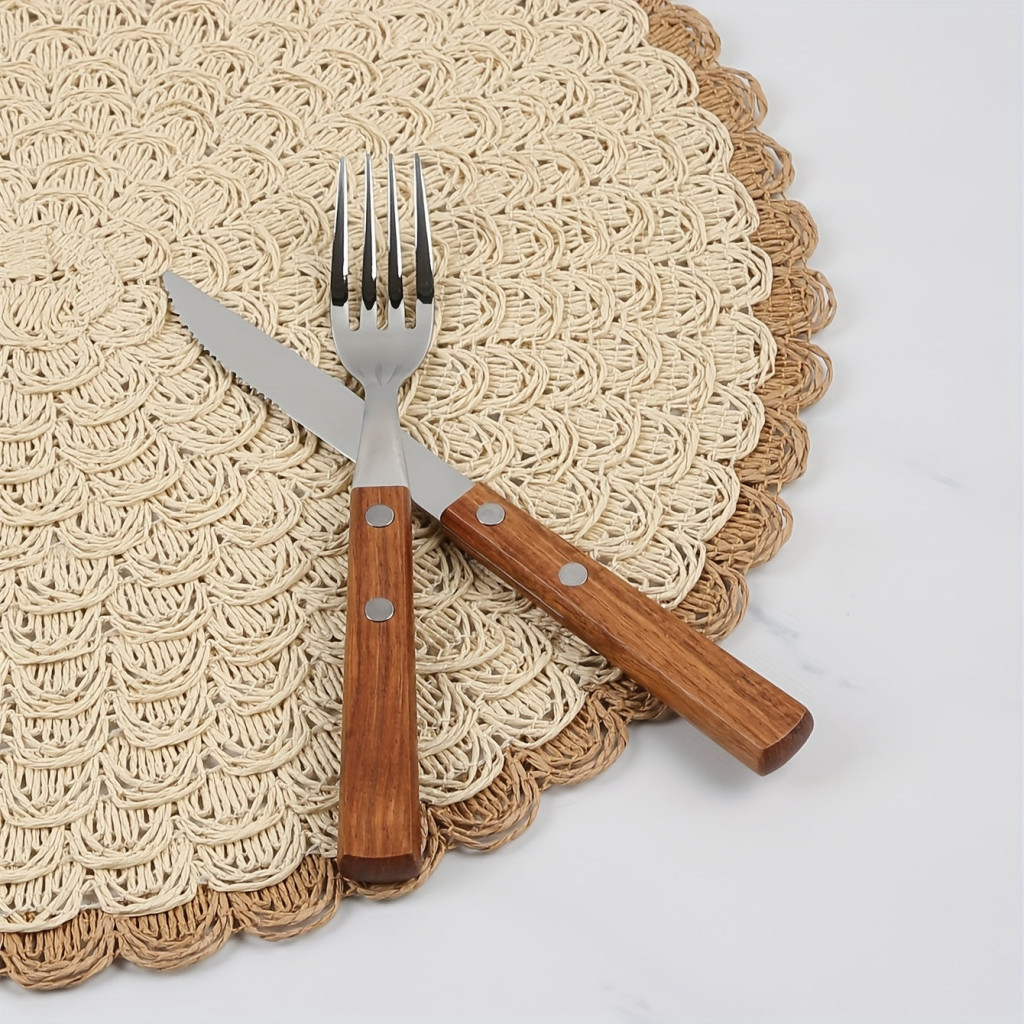 4 darabos Boho Chic Szett Fonott Vászon Kerek Tányéralátét