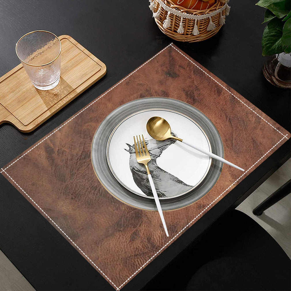 4 darabos Szett Vintage Műbőr Megjelenésű Vászon Asztali Alátétek