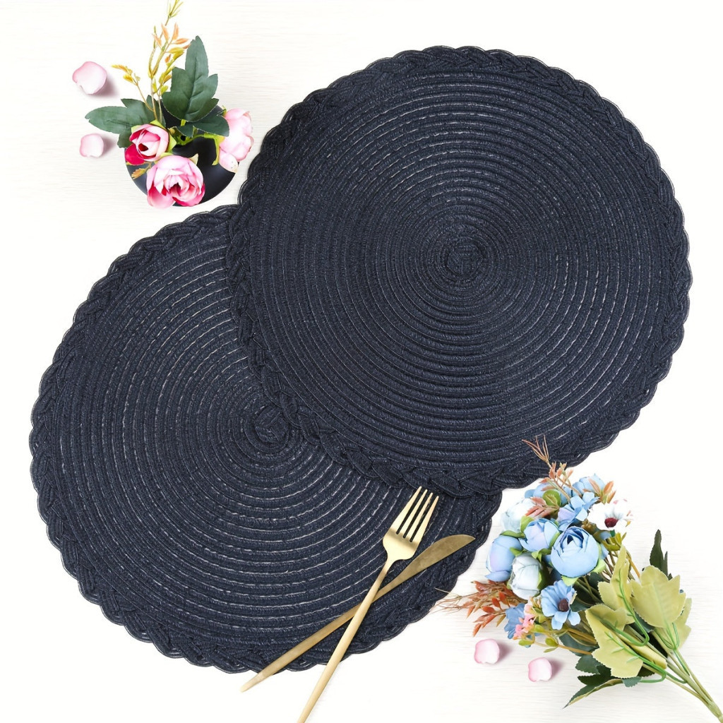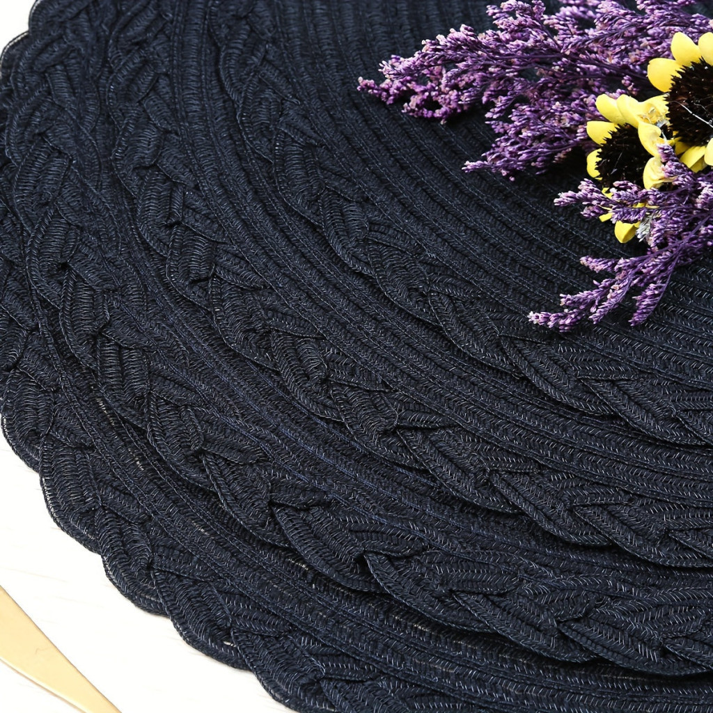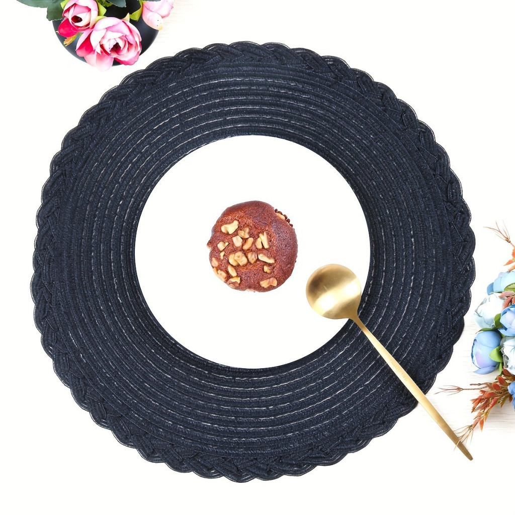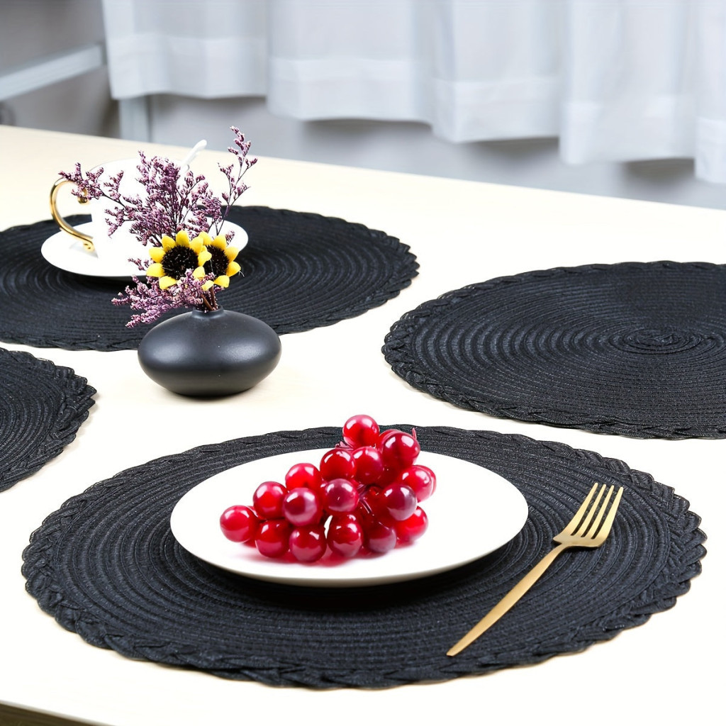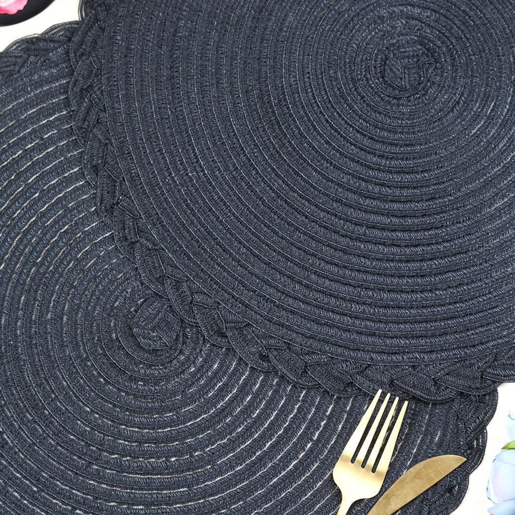 4 darabos fekete csúszásmentes kerek szőtt alátét készlet