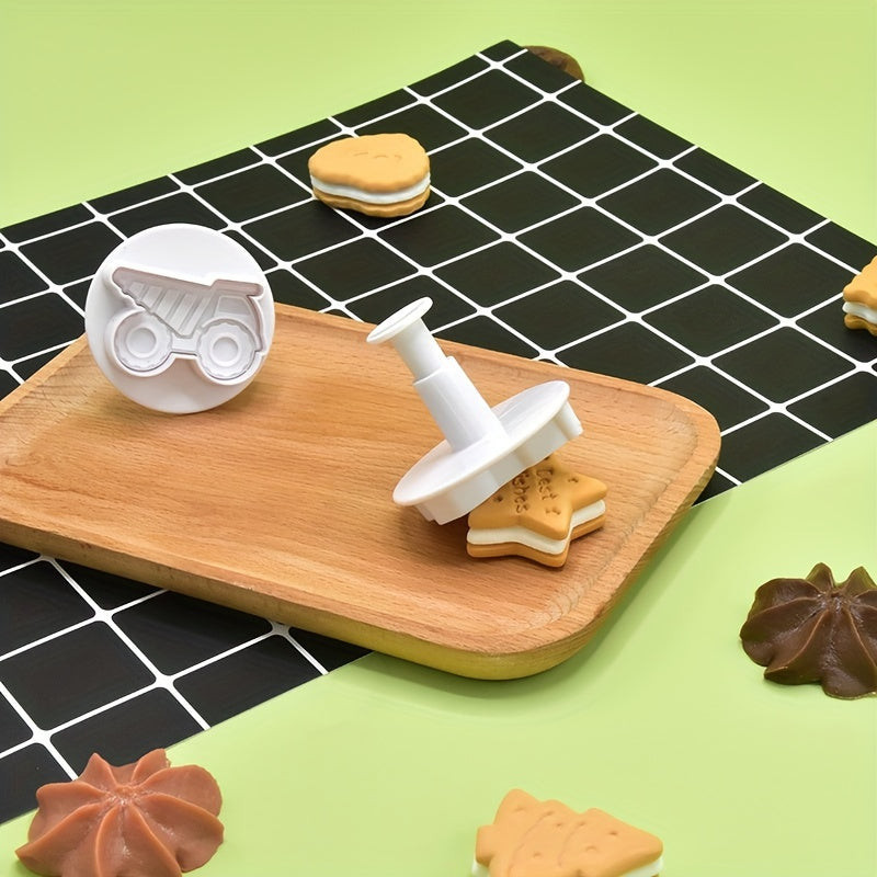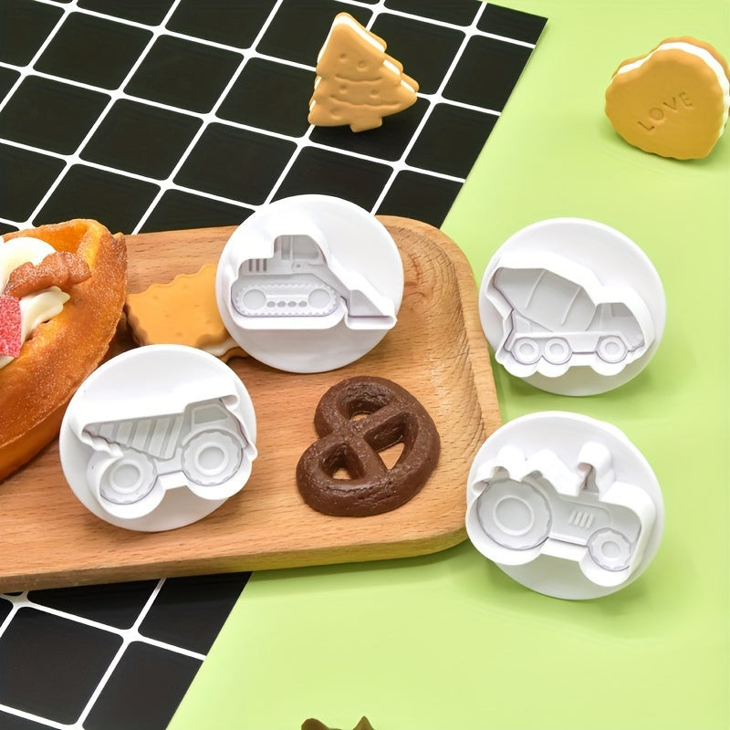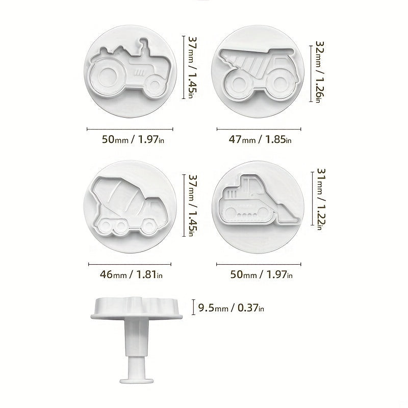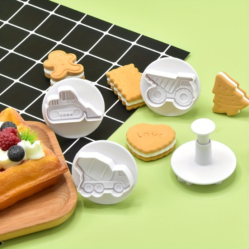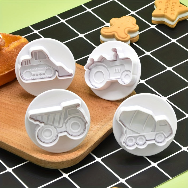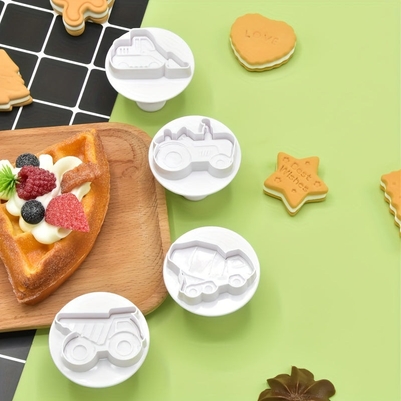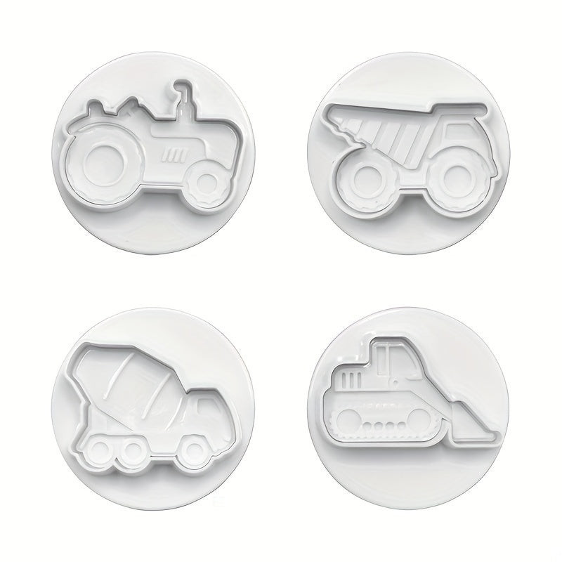 4 db Construction Series szállítójármű dombornyomott virágforma tortákhoz, kekszekhez, csokoládéhoz és barkácssütéshez