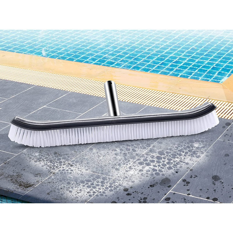 45 cm-es rozsdamentes acél felsőrészű hajlított fal- és aljzattisztító kefe, fekete