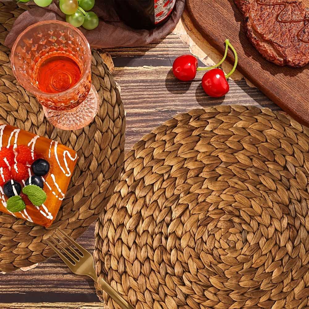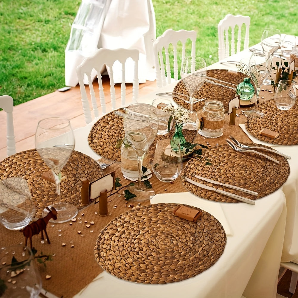 4db, Fonott Rattan Mintás Nyomtatott Kerek Tányéralátét