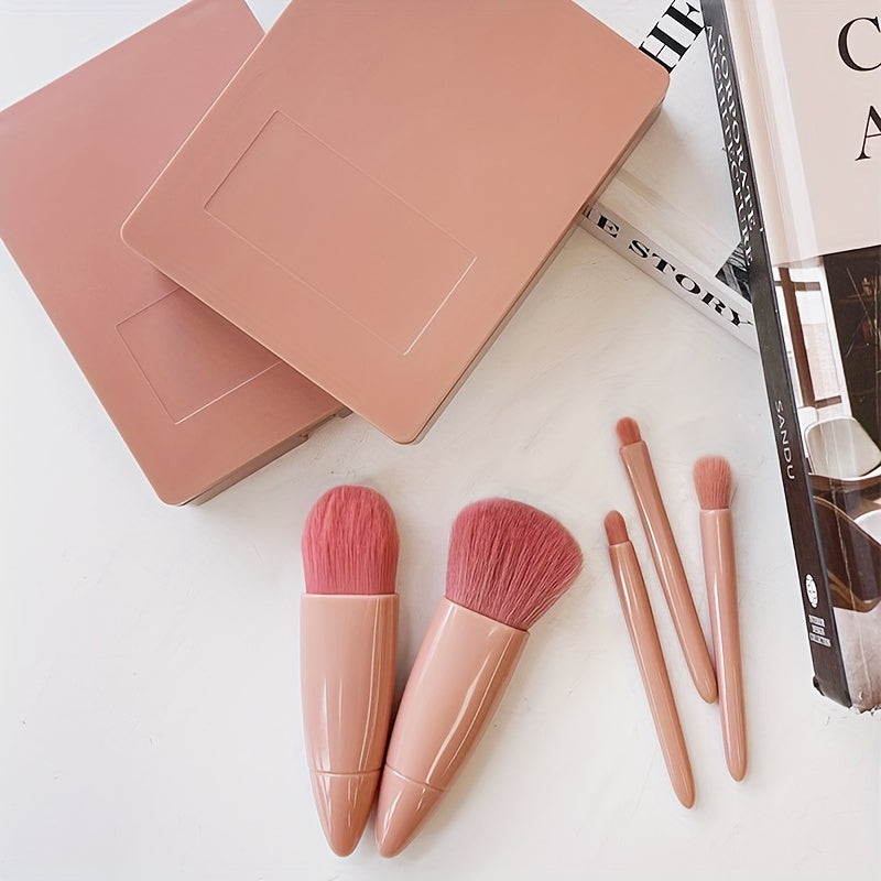5 Darab Hordozható Mini Smink Ecset Készlet Tükörrel És Tokkal