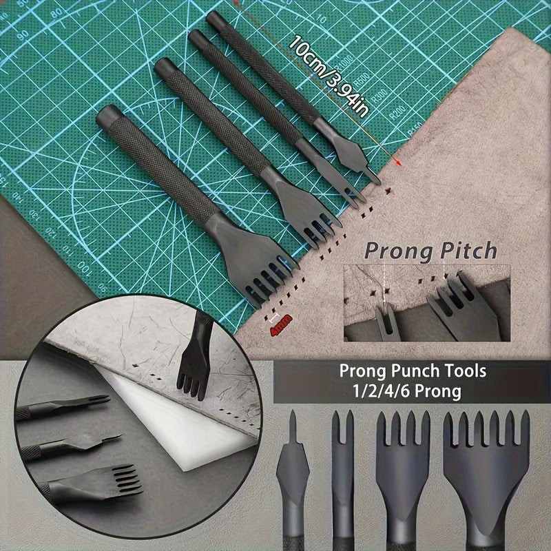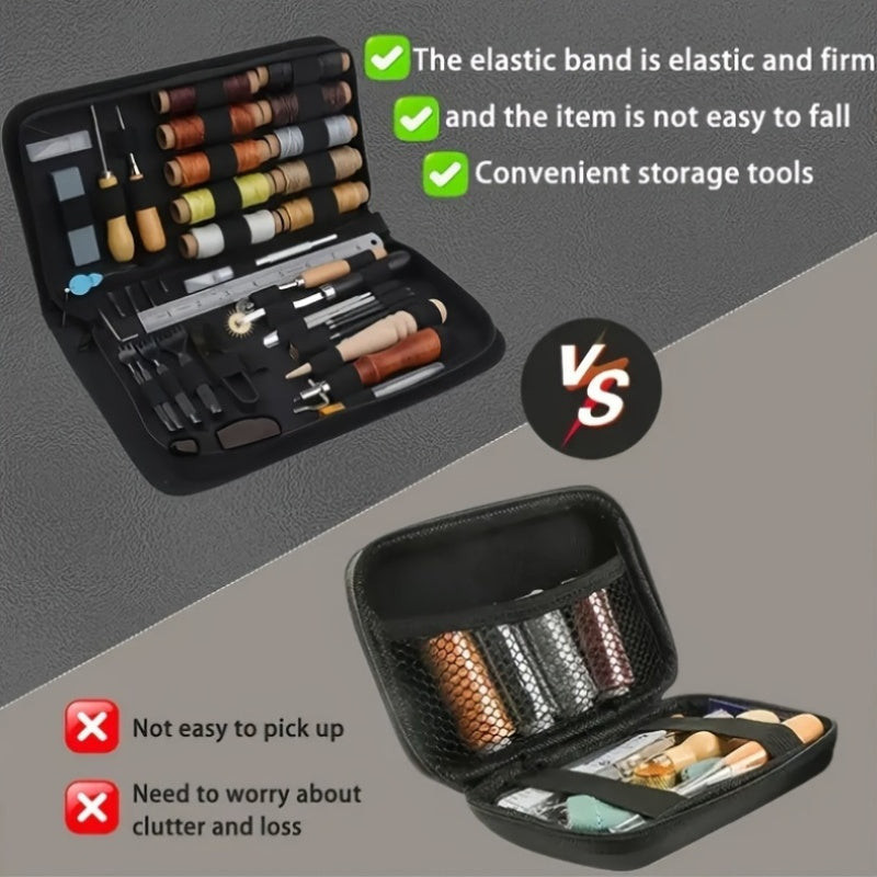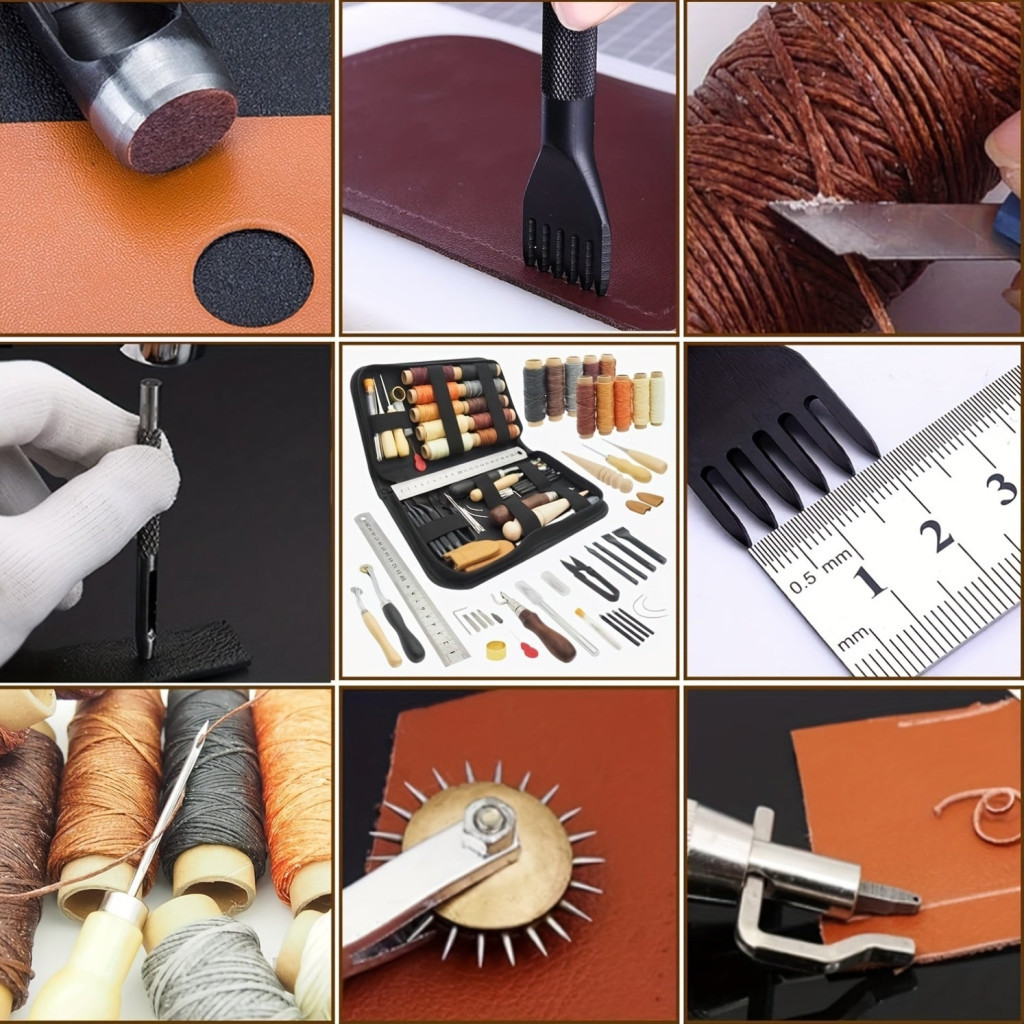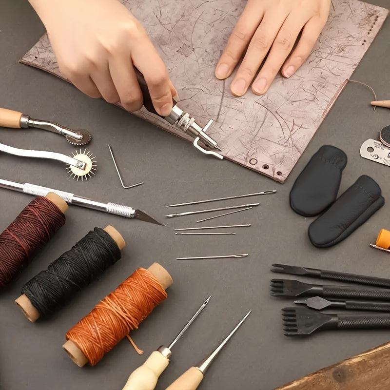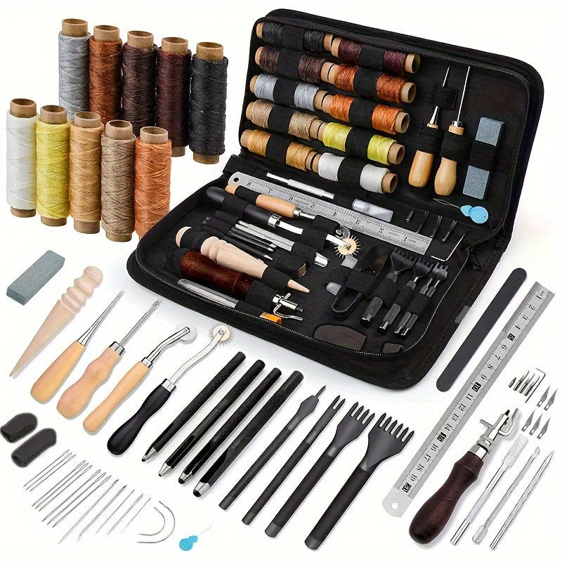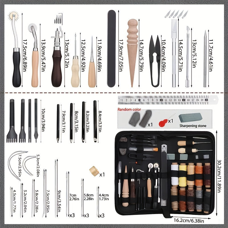 59 részes professzionális bőr kézműves szerszámkészlet - Fém bőrmegmunkáló kellékek varróhoronnyal