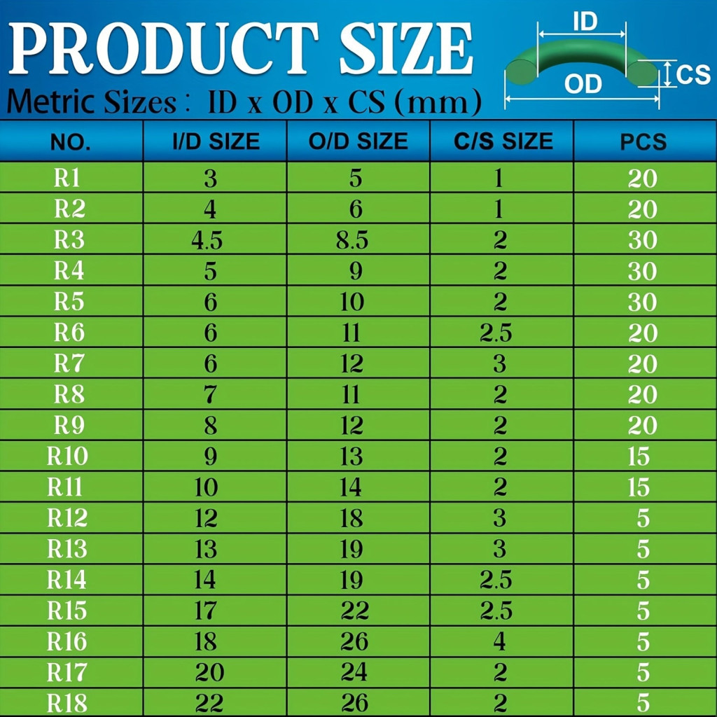 595 darabos O-gyűrű készlet - Metrikus&SAE, Kerek