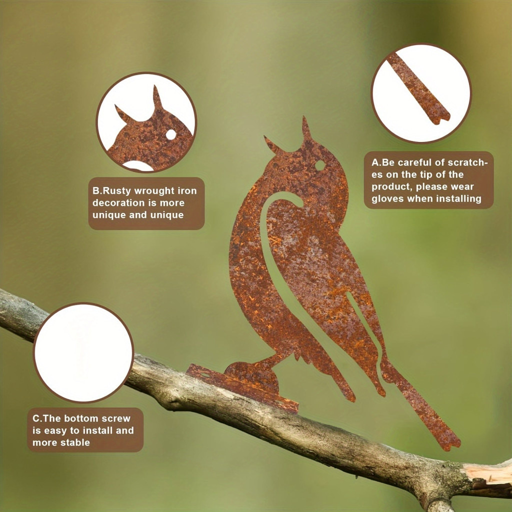 5db Rozsdás Madár Dekoráció