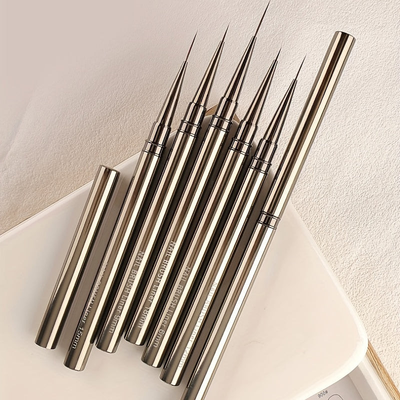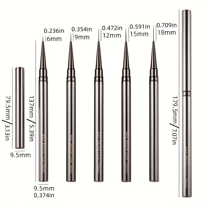 5db UV géllakk körömbélés ecsetkészlet Rajzvonalak Csíkfestés Virágtoll Körömdíszítés manikűr Fém fogantyús csíkozó ecsetek 6/9/12/15/18mm