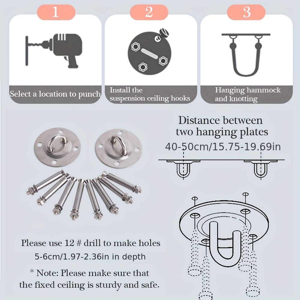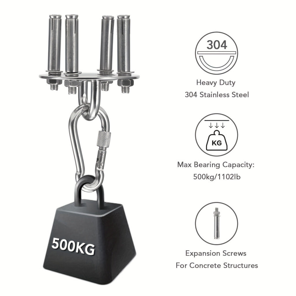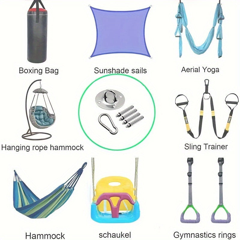 6 darabos Rozsdamentes Acél Merev Mennyezeti Horogkészlet Függőágyakhoz, Hintákhoz és Kültéri Bútorokhoz