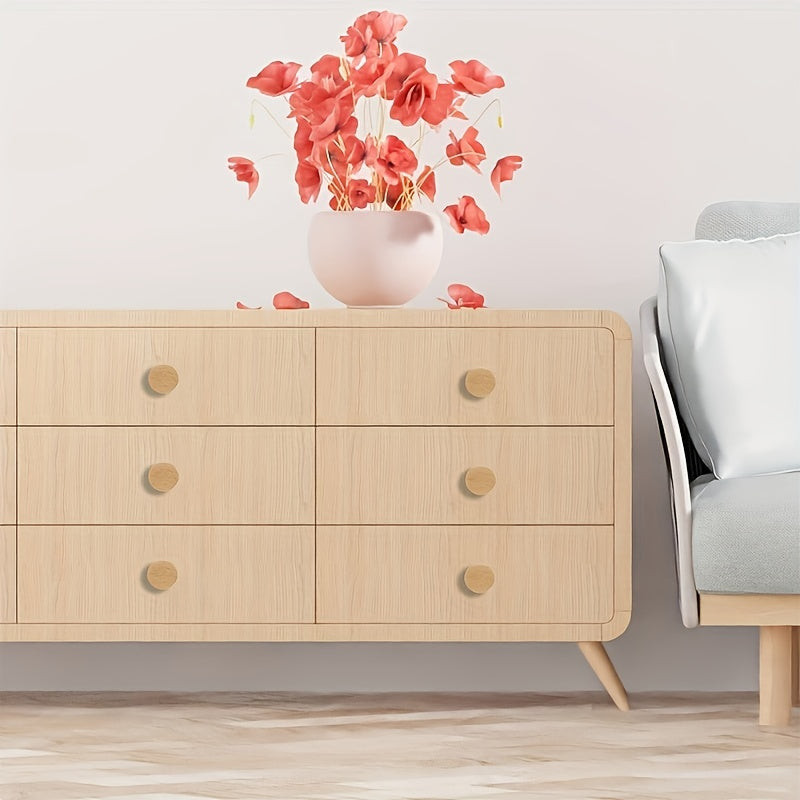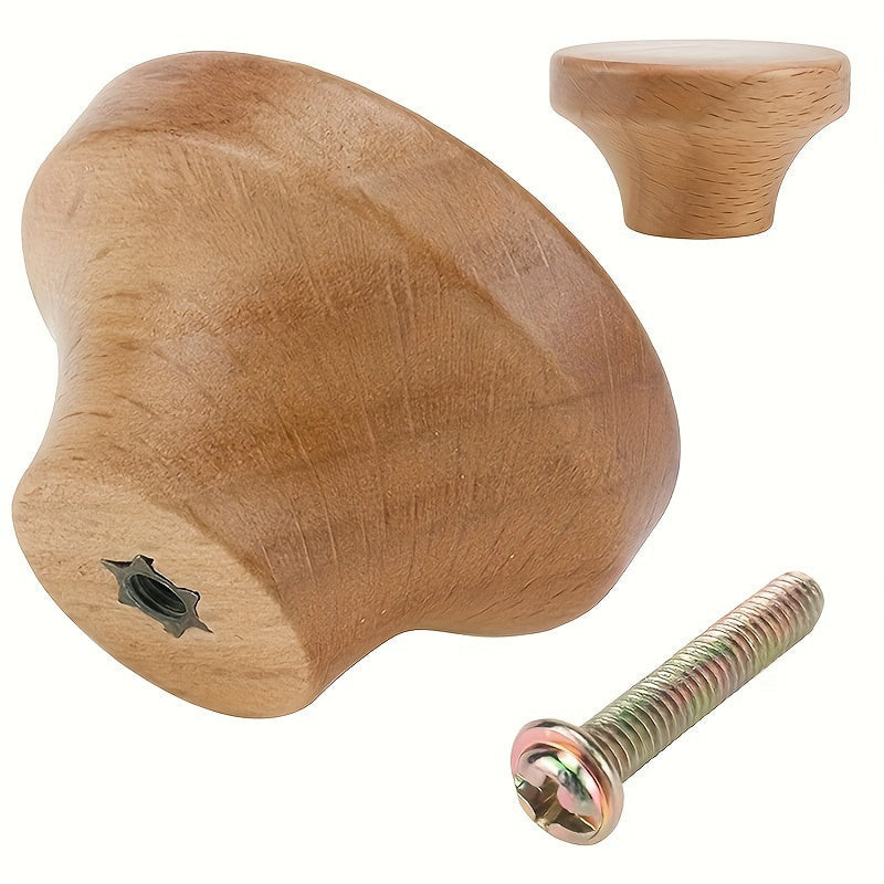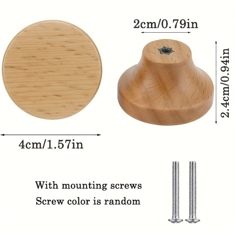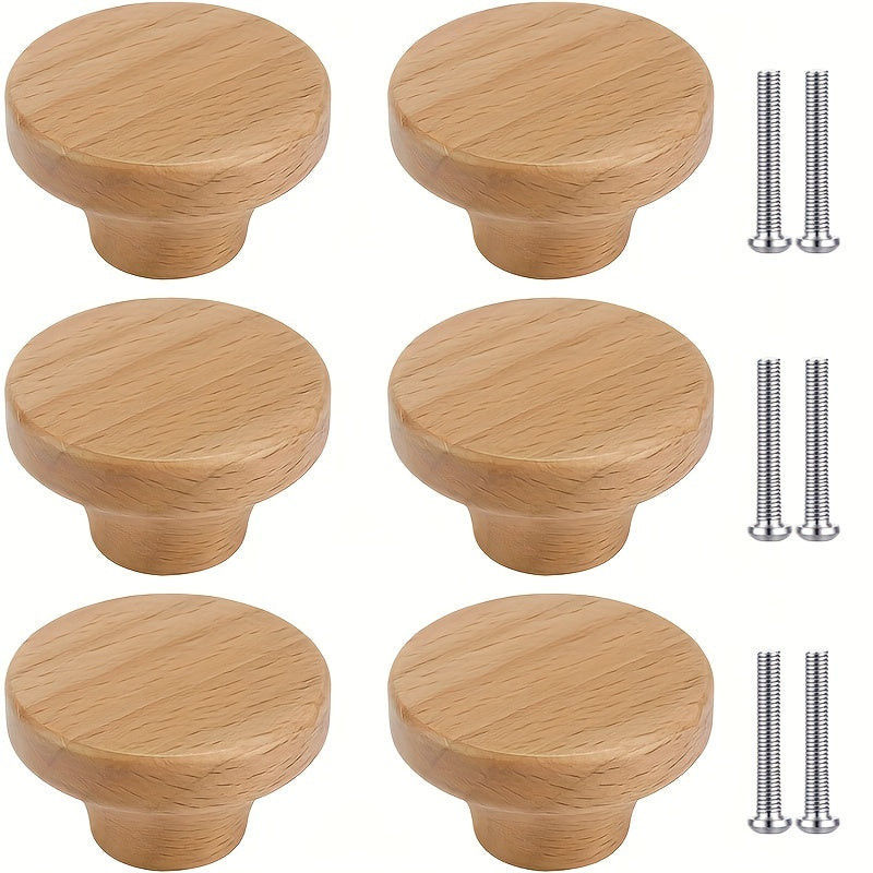 6 db kerek fa fogantyú, szerelőcsavarral, polírozott hársfából