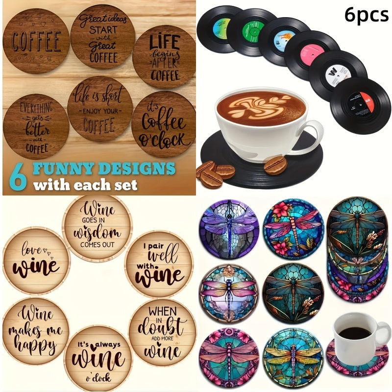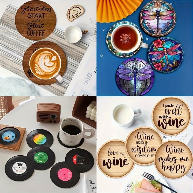6db-os Fa Alátét Szett - Hőálló Dekoratív Asztali Szőnyegek Kávécsészékhez
