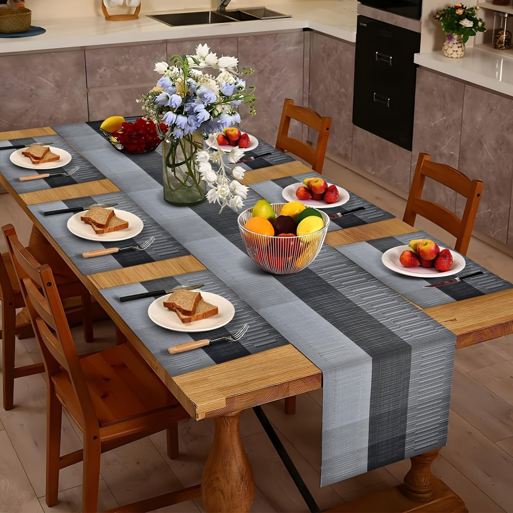 7 db-os európai stílusú PVC asztalterítő szett, csúszásmentes, hőálló étkező alátét