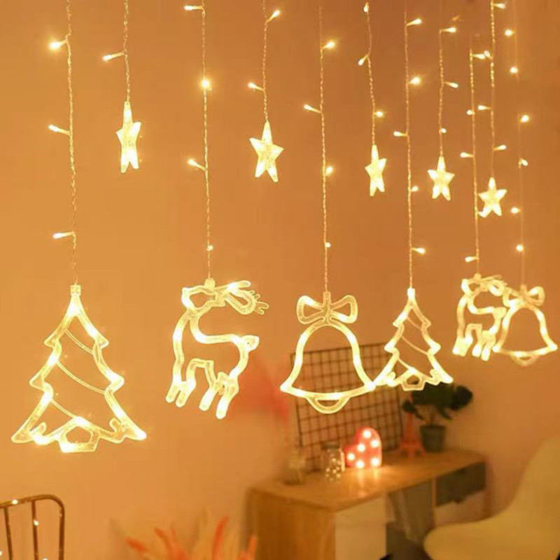8 programos fényfüggöny csillagokkal, és hold formákkal, sorolható, 250 cm - hidegfehér