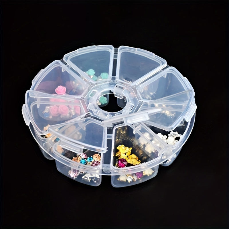 8-rekeszes kerek tárolószervező gyémántfestő eszközökhöz, ékszerekhez és apró tárgyakhoz