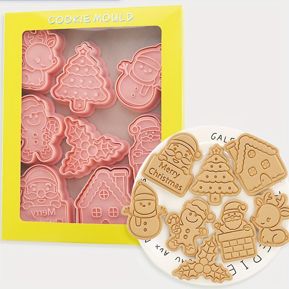 8 részes karácsonyi süti kiszúró készlet: Mézeskalács ember, karácsonyfa, hóember, Mikulás, harangok, hópelyhek, Boldog karácsonyt