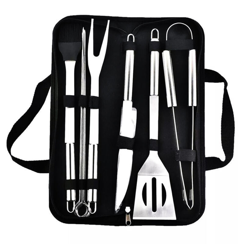 9 részes, grill eszköz készlet, rozsdamentes acél, hordozható táskában