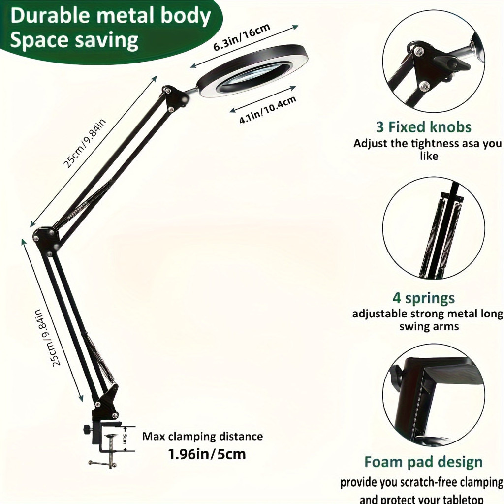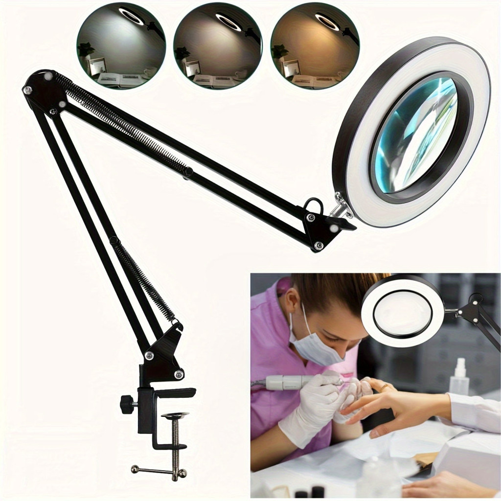 Állítható LED nagyító lámpa, nagyító üveg lámpa szorítóval, hosszú karú asztali lámpa manikűrhöz, szépségápoláshoz