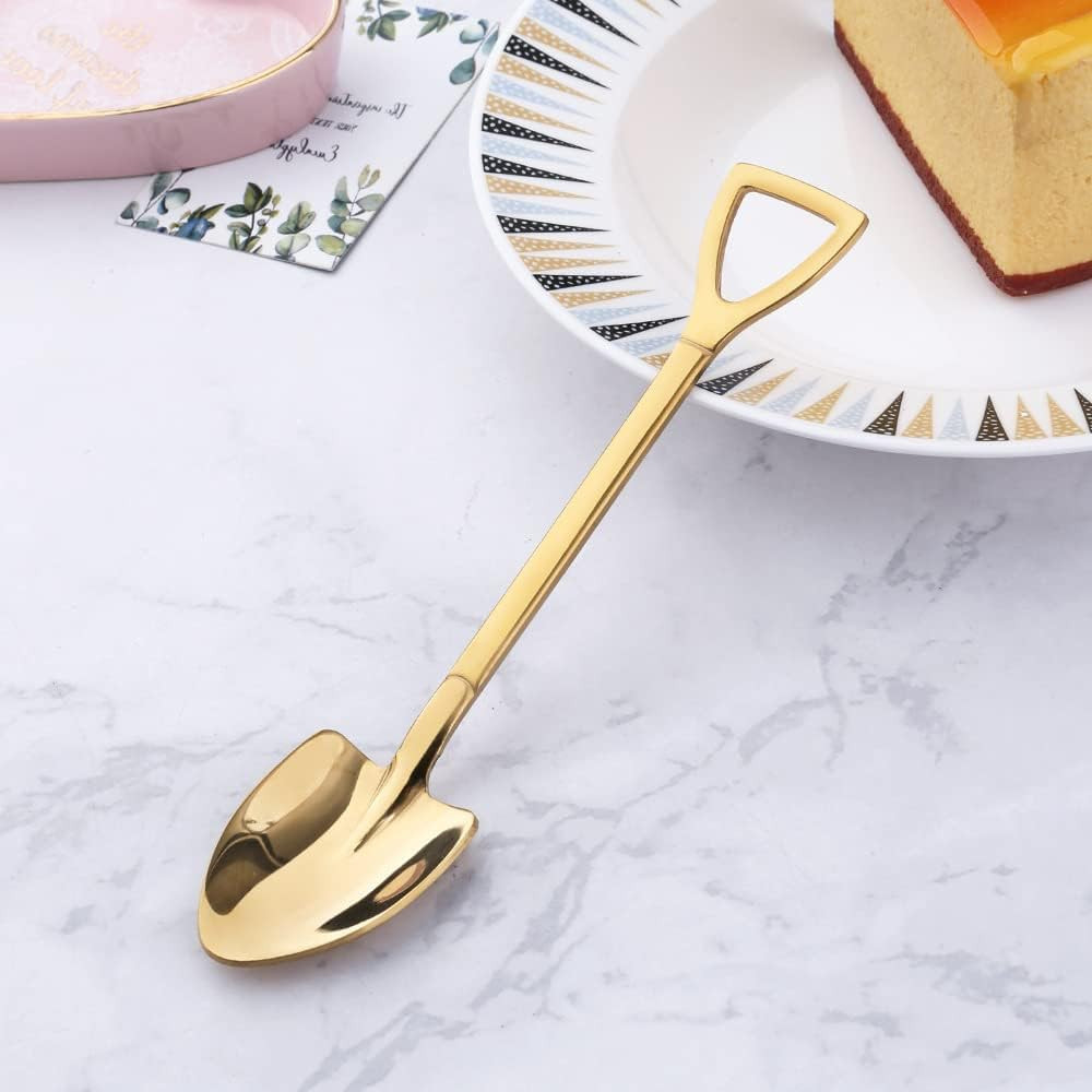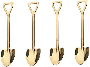 Arany Színű Ásó Alakú Kanál (4 db) – Egyedi Desszertkanál Szett