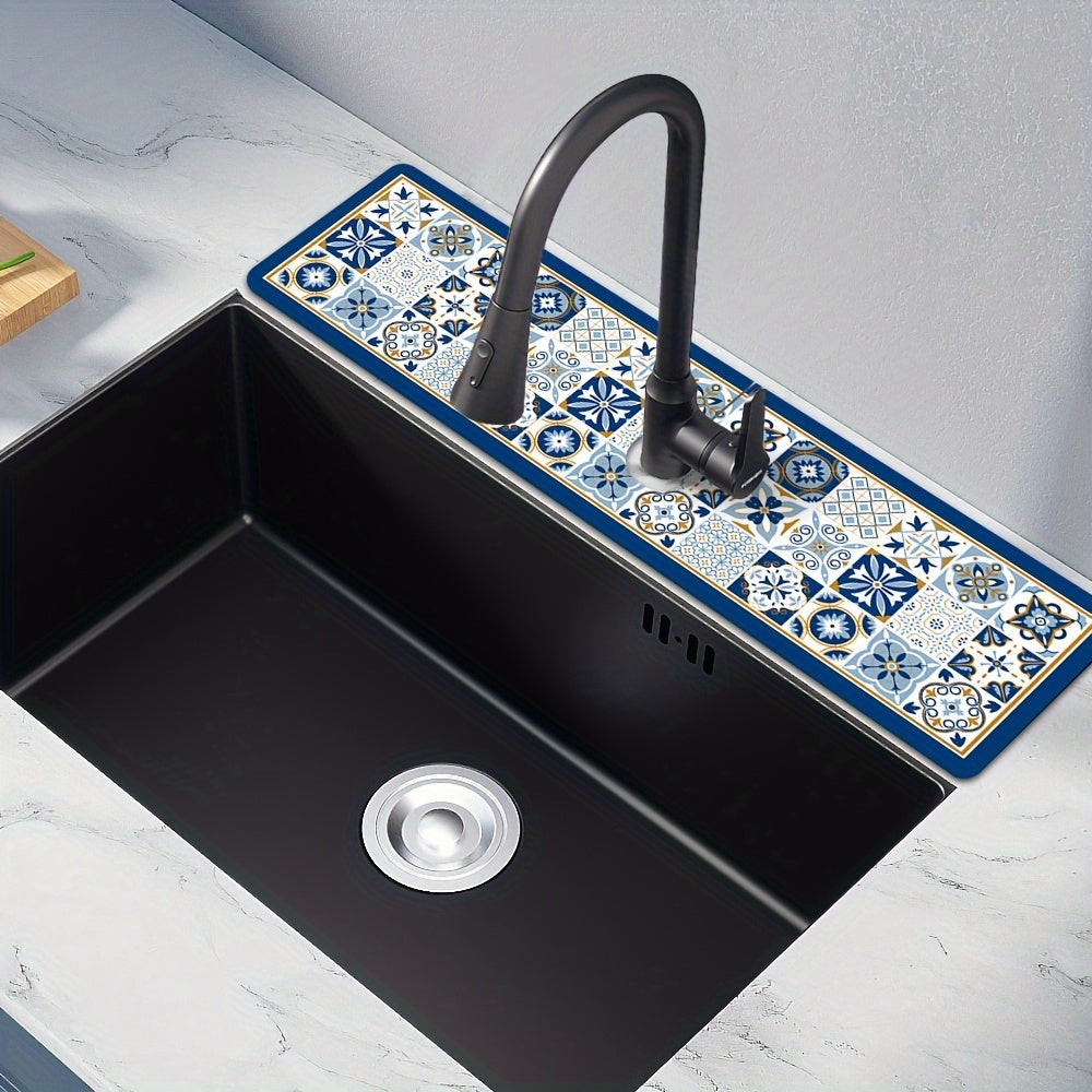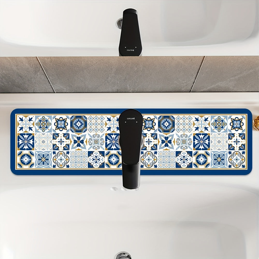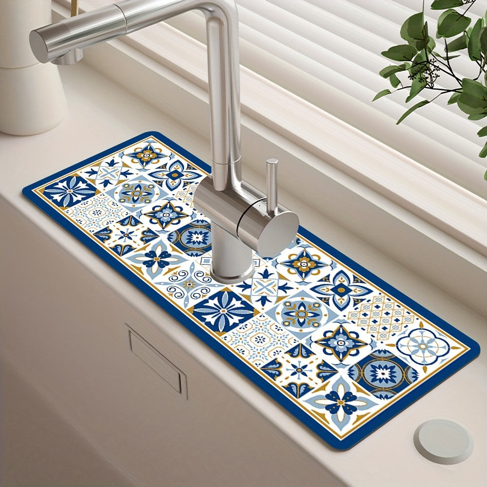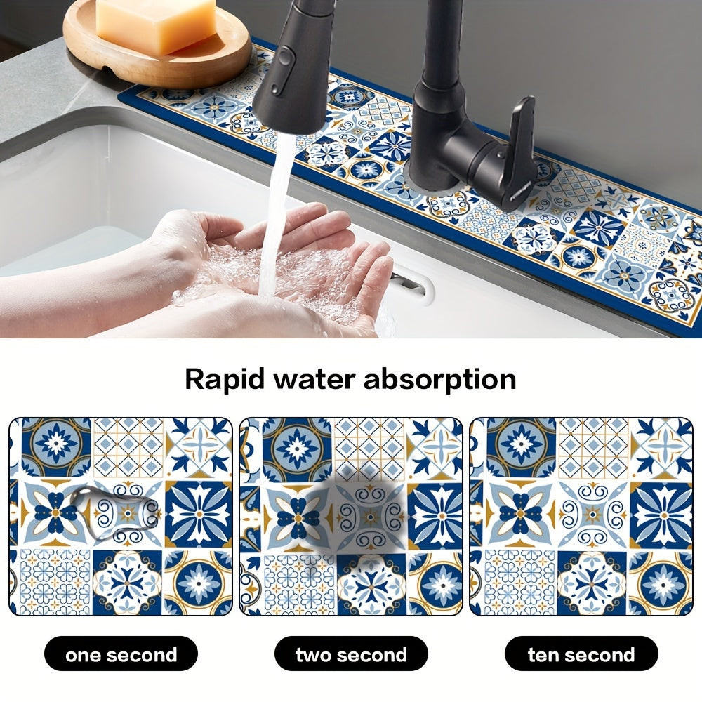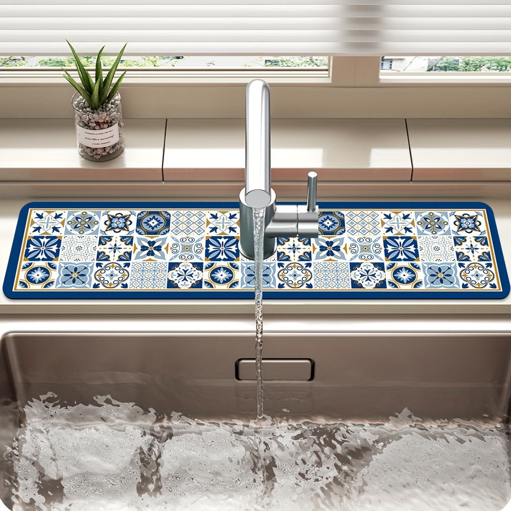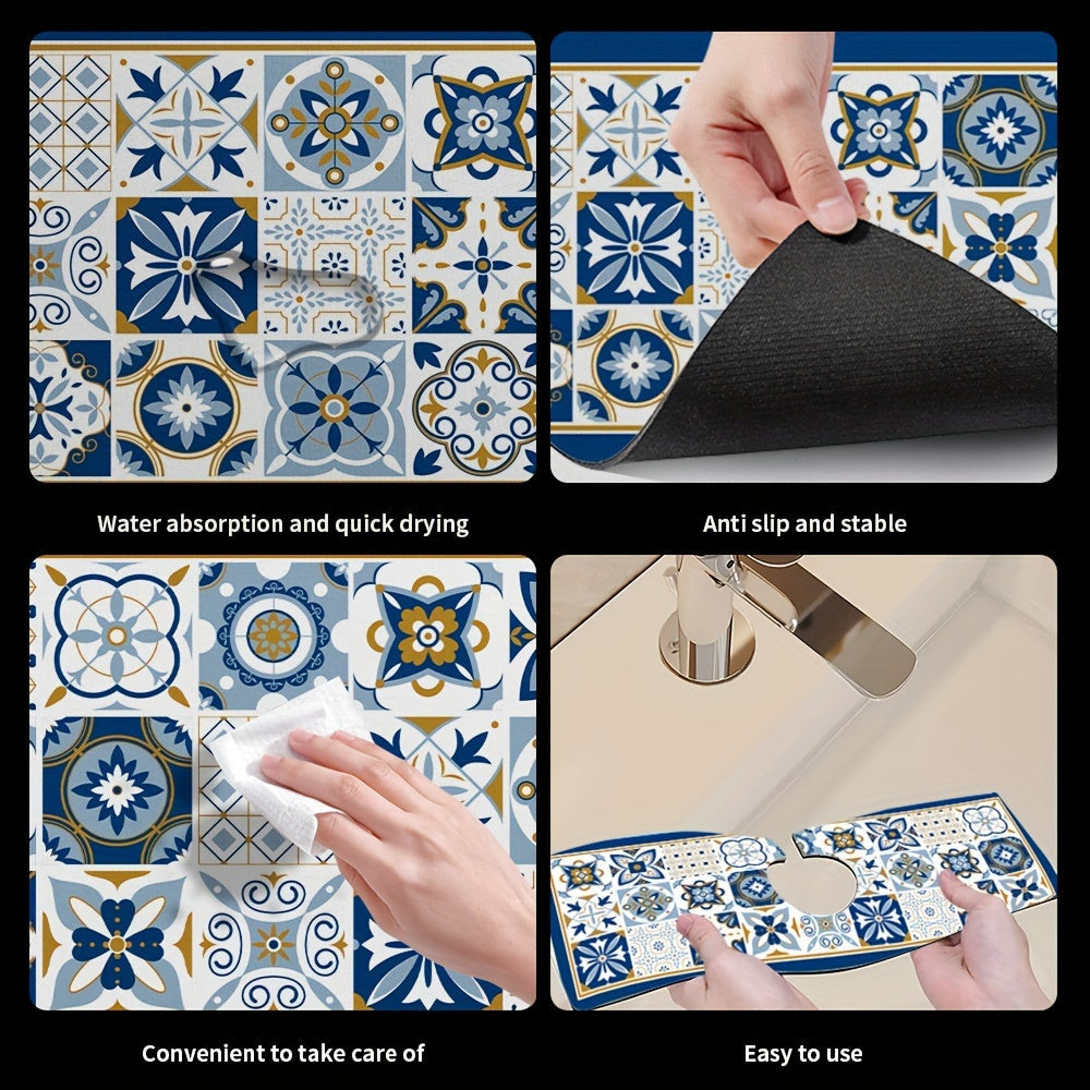 Asztali edény szárító alátét, csempe mintás poliészter nedvszívó alátét