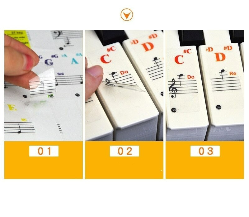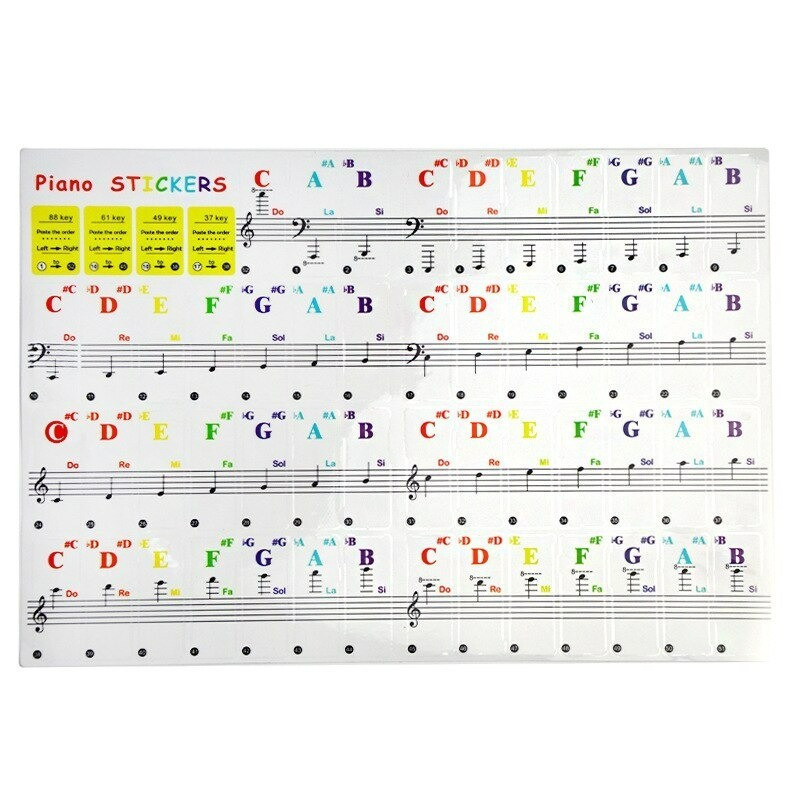 Átlátszó, színes zongorabillentyűzet matricák