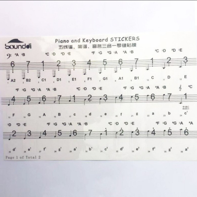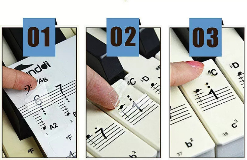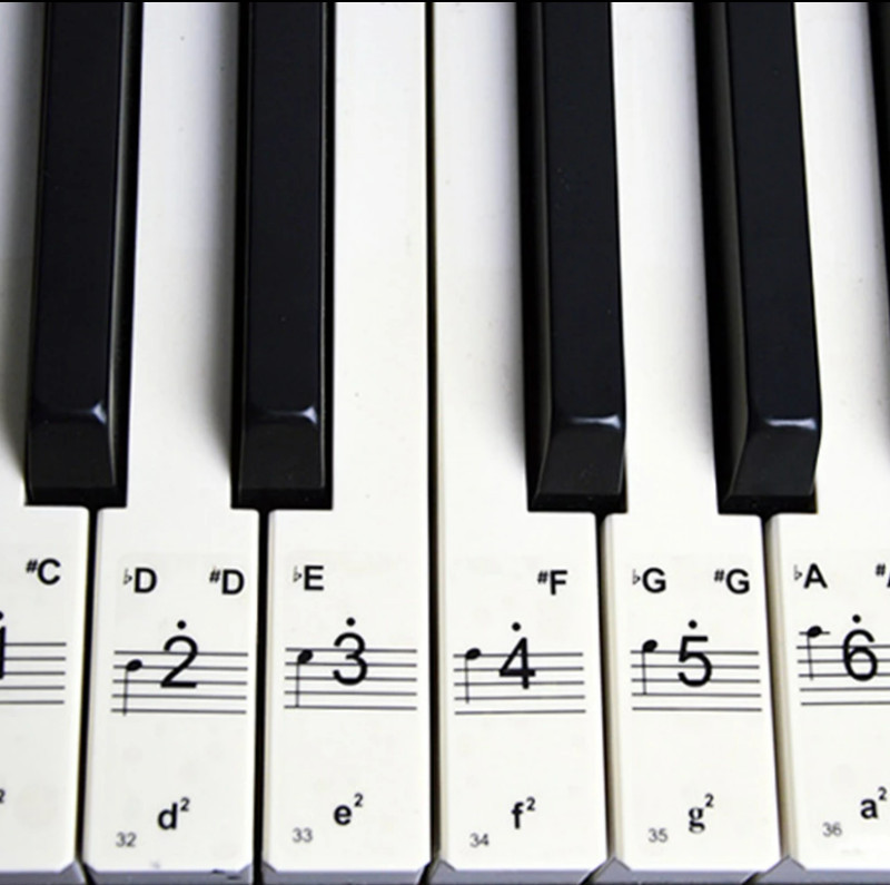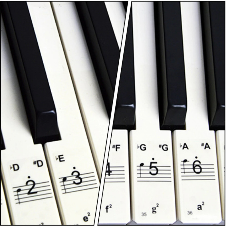 Átlátszó zongorabillentyűzet matricák, fekete-fehér