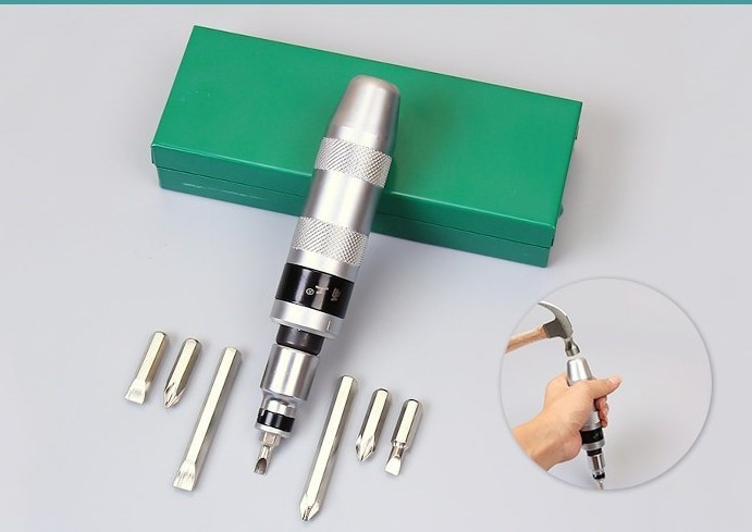 Ez az eszköz olyan csavarokhoz lett kifejlesztve, amiket hagyományos társaival lehetetlen lenne meglazítani, vagy éppen meghúzni. Különlegessége abban áll, hogy a megfelelő bitfej behelyezése után rá kell helyezned a csavarra és kalapáccsal ütni a csavarhúzót. Ennek hatására a csavar megadja magát, hiszen az ütés hatására el is fordítja a csavart. Markolata csúszásmentes, így a munka biztonságos és könnyű lesz. Hosszabb szerelés esetén sem fog kicsúszni a kezedből. Króm-vanádium acél anyagának köszönhetően rendkívül tartós és erős, tehát segítségére hosszú éveken keresztül számíthatsz. Hat bitfej közül választhatod ki az adott munkához a legoptimálisabbat.