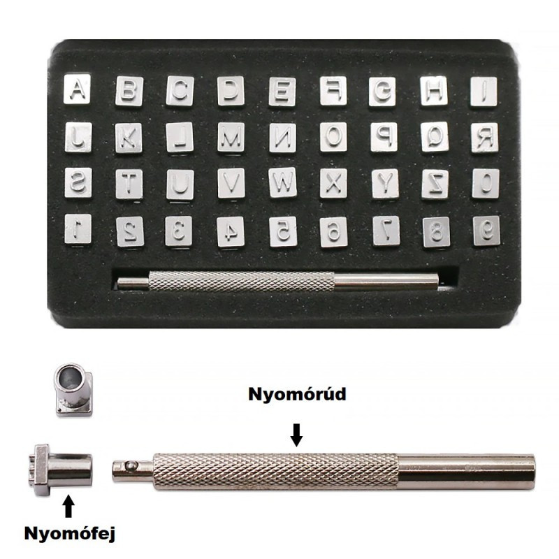 36 db Angol betűt és számot 0-tól 9-ig és 1 db nyomórúdat