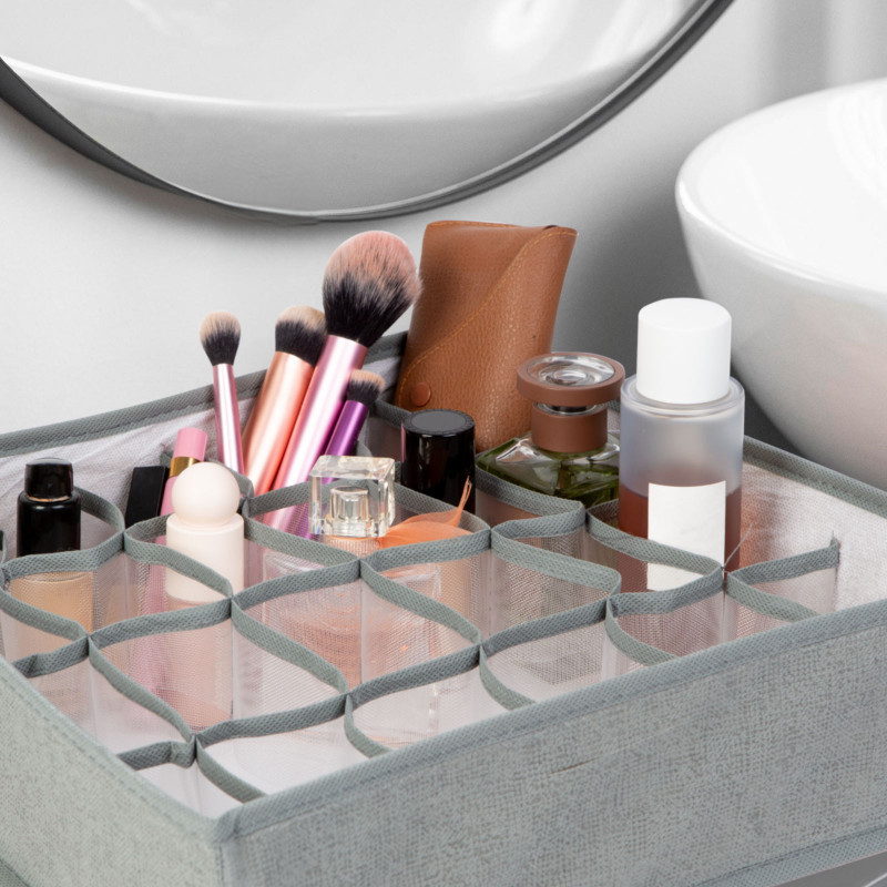 Bewello Szövet tárolódoboz - 32 x 32 x 10 cm - 24 zseb - szürke