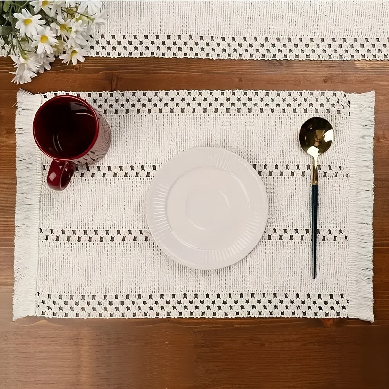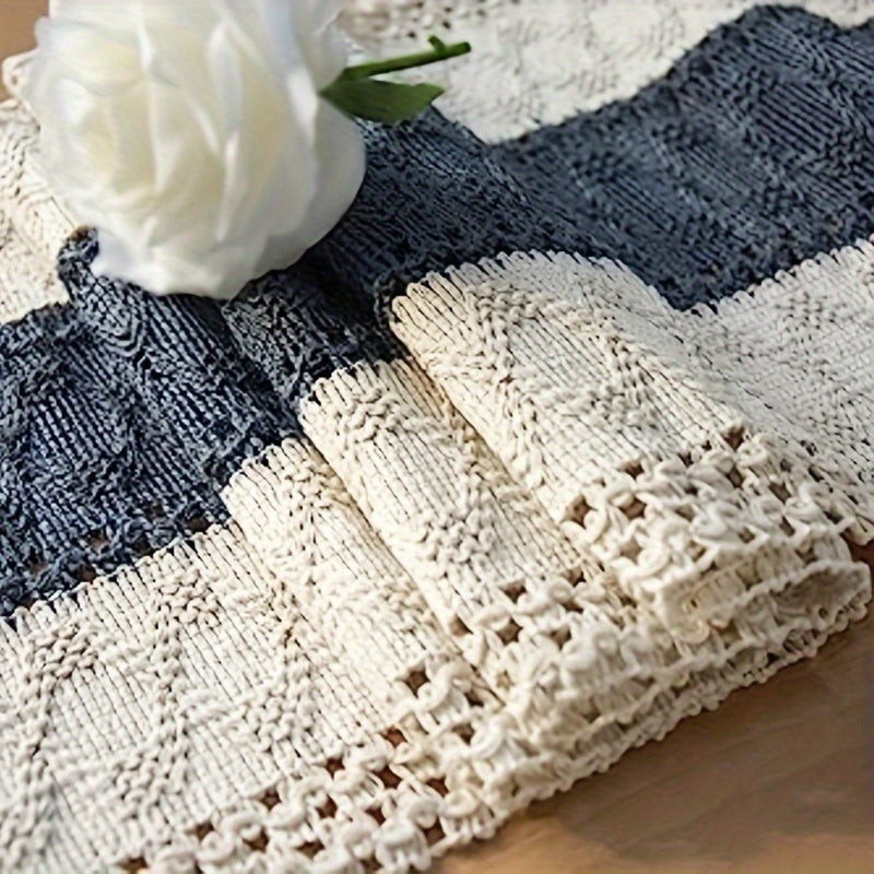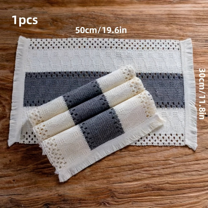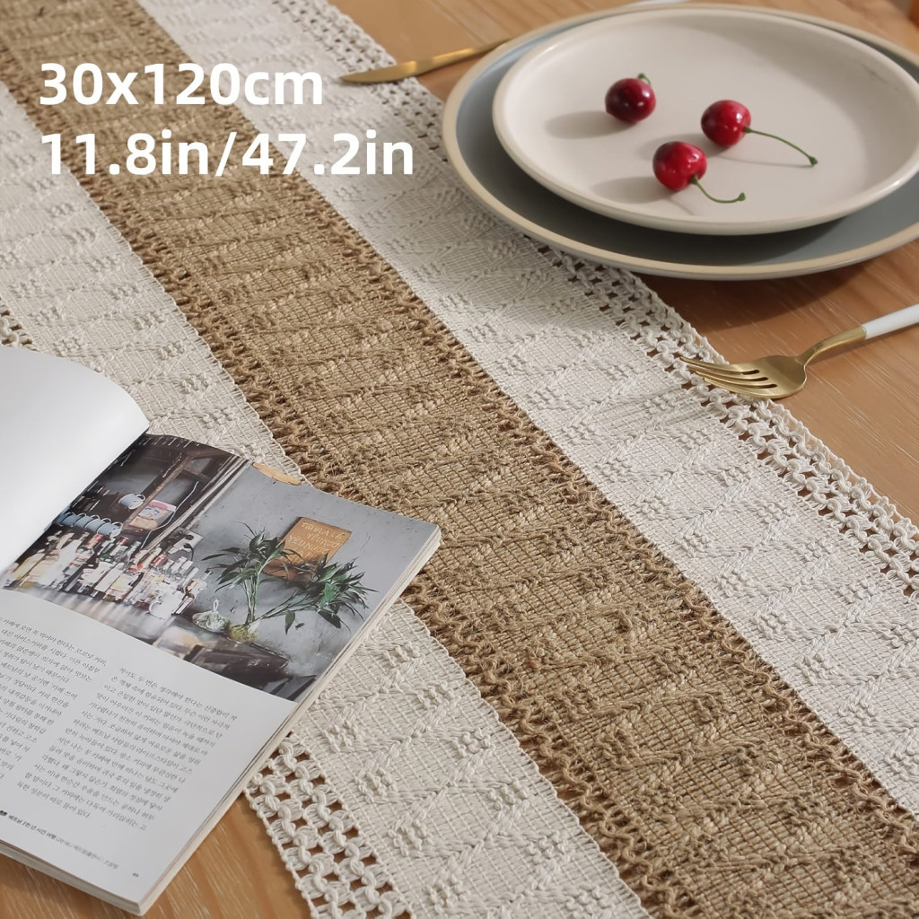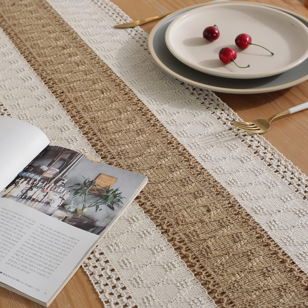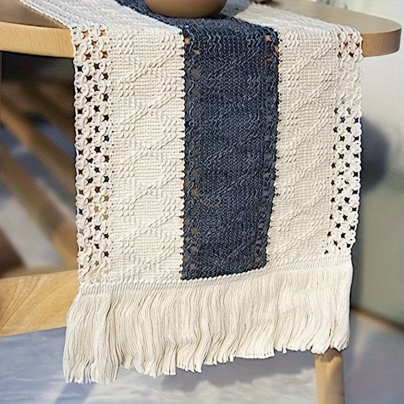Bohém Stílusú Szürke Vászon Asztalfutó -