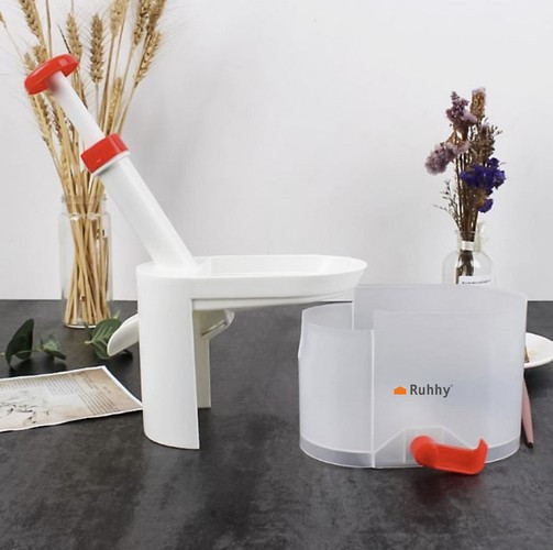 A magok egy külön tartályba hullanak, amit a használat után könnyedén kiüríthetsz. A gyümölcsök pedig egy csatornán keresztül a tartályba kerülnek, így minden rendezett és tiszta marad.