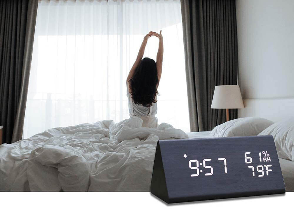 Digitális ébresztőóra pára és hőmérséklet jelzővel