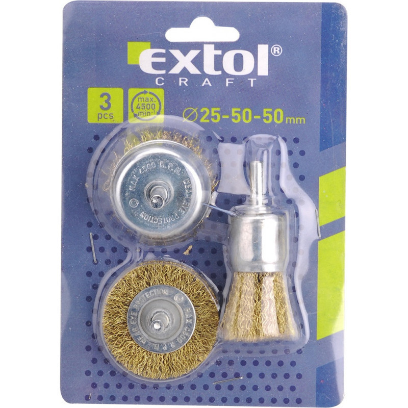 EXTOL CRAFT drótcsiszoló körkefe fazékkefe készlet; O 6mm-es csap, fúróba fogható, max. 4500 ford/perc