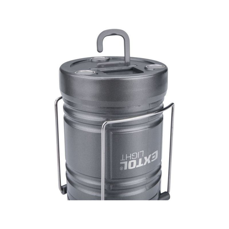 A zseblámpa bekapcsolása egyszerűen felhúzással történik. Alkalmas világításra kempingezéskor, a házban, a lakásban. 360°-os szórású fényt biztosít. A lámpa testében van egy tárolórekesz a tartalék elemeknek. Teleszkópos kapcsolóval rendelkezik. A lángutánzat kellemes hangulatot teremt. Műszaki információk: Tápegység: 3xAA 1,5 V-os elemek (nem tartozék). súly elemek nélkül: 238g világítás 2 fajta: 75lm (fehér fény), 25lm (lángutánzat)