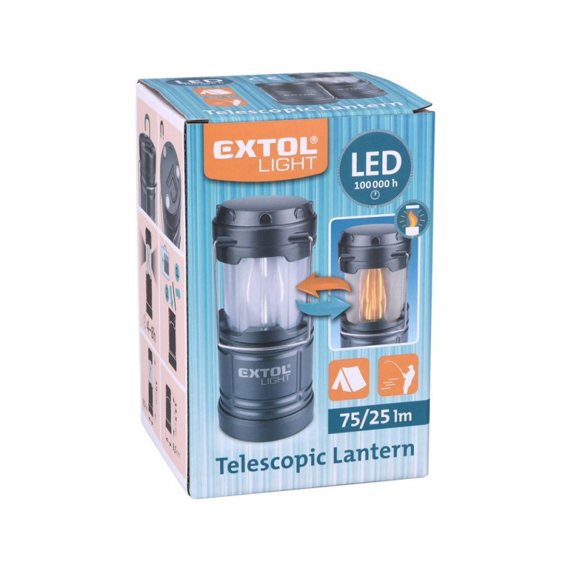 EXTOL LIGHT LED teleszkópos lámpa, 75 Lumen, láng hatású fény, elem nélkül